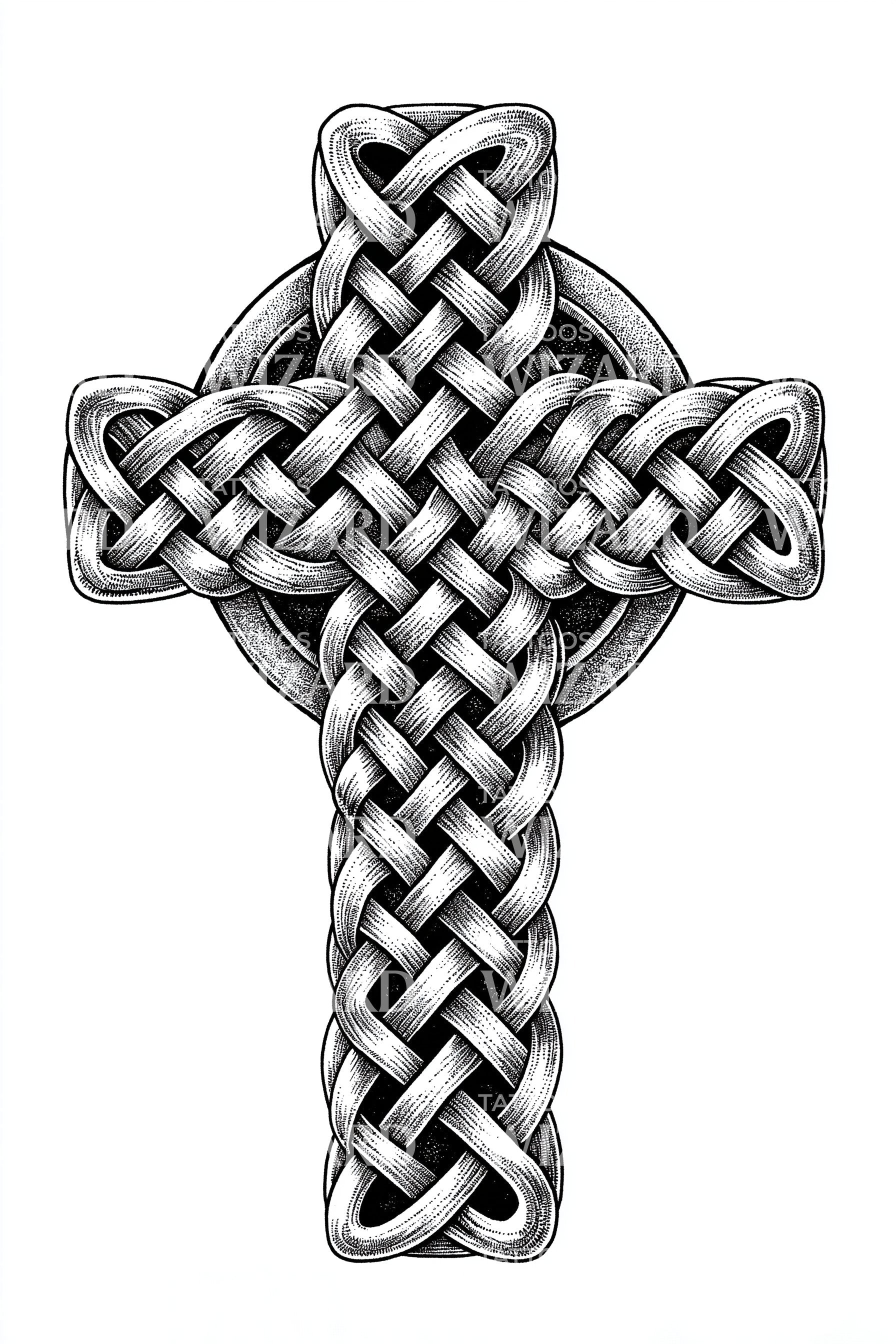 用这款独特的装饰性凯尔特风格纹身设计提升您的风格。自豪地展示您的信仰,这个象征性的十字架与复杂的结饰交织在一起。每一个曲线都体现了力量、传承和精神理念,营造出美学与精神装饰的迷人融合。
