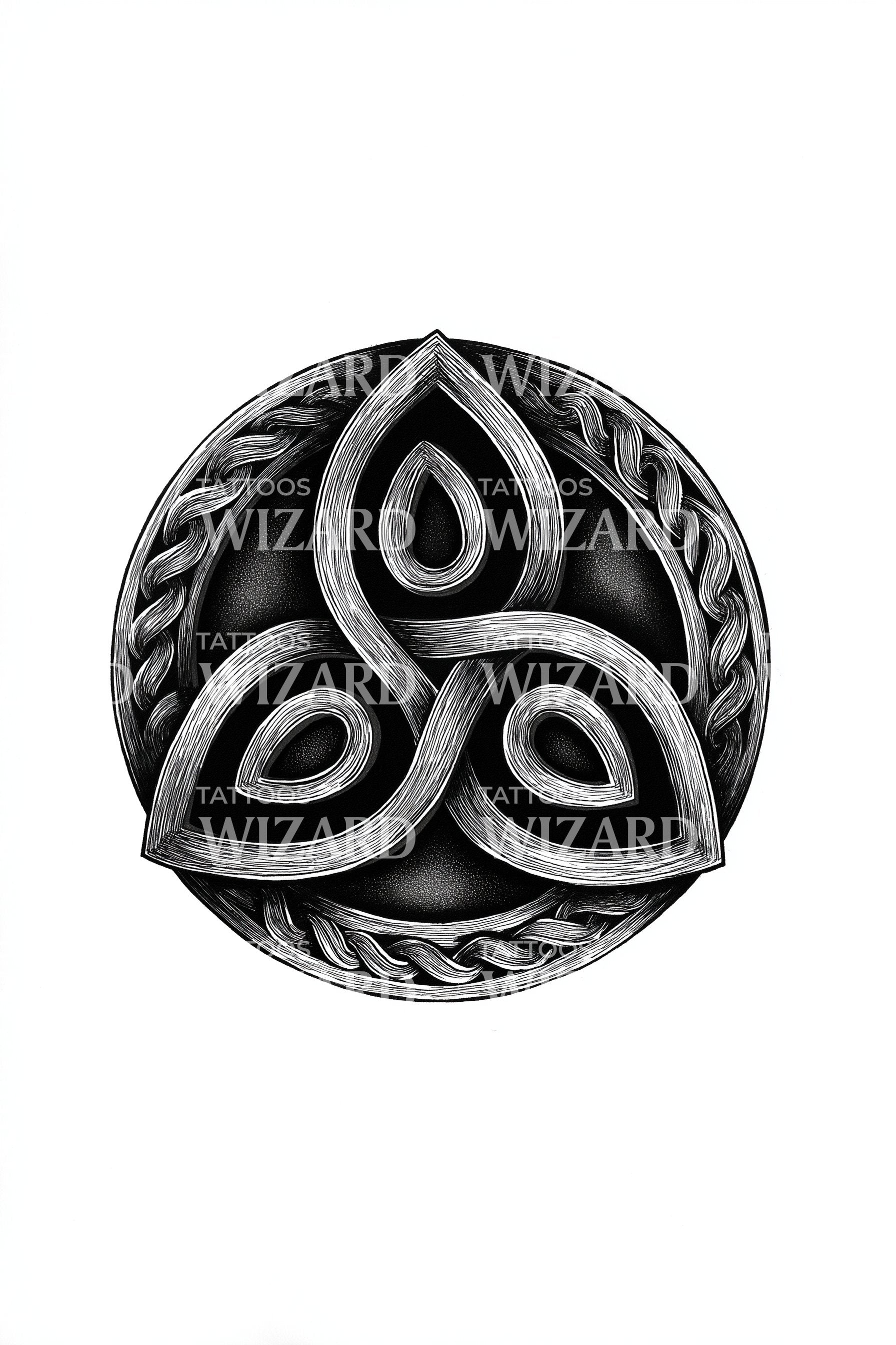 沉浸于凯尔特传说的丰富幻想中,感受我们这款装饰性纹身设计。精细地体现了三螺旋结这一古老的永恒运动象征,这件艺术作品散发出永恒连续的气息。其装饰风格为您的纹身收藏增添了永不过时的魅力。