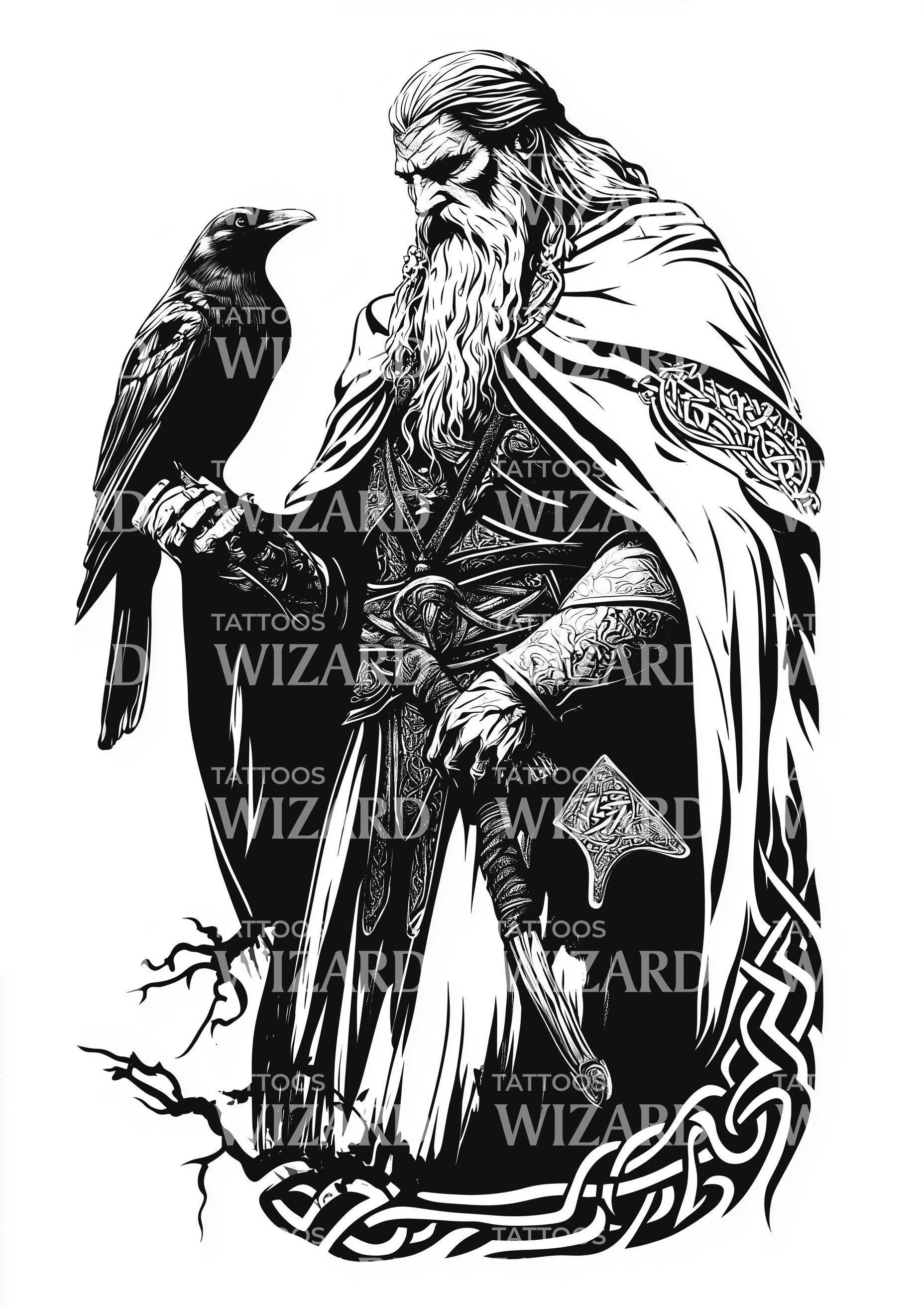 沉浸在凯尔特神话的迷人领域,欣赏这款神秘的德鲁伊法杖纹身设计。它是盖尔美与幻想艺术的精美融合,以细腻的黑灰色调呈现。这一魔法、信仰与自然的象征完美反映了古老神秘的德鲁伊魅力。