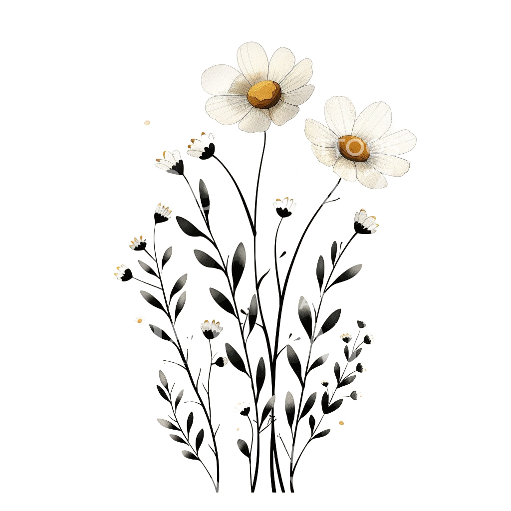 这个黑白纹身设计是对茶爱好者的极简致敬。展示了洋甘菊的低调之美,这是一种在茶中常见的植物,设计中包含了复杂的花卉细节。其细腻的线条和单色调的配色方案创造出一种微妙而引人注目的美感,完美适合喜欢细腻优雅的粉丝。