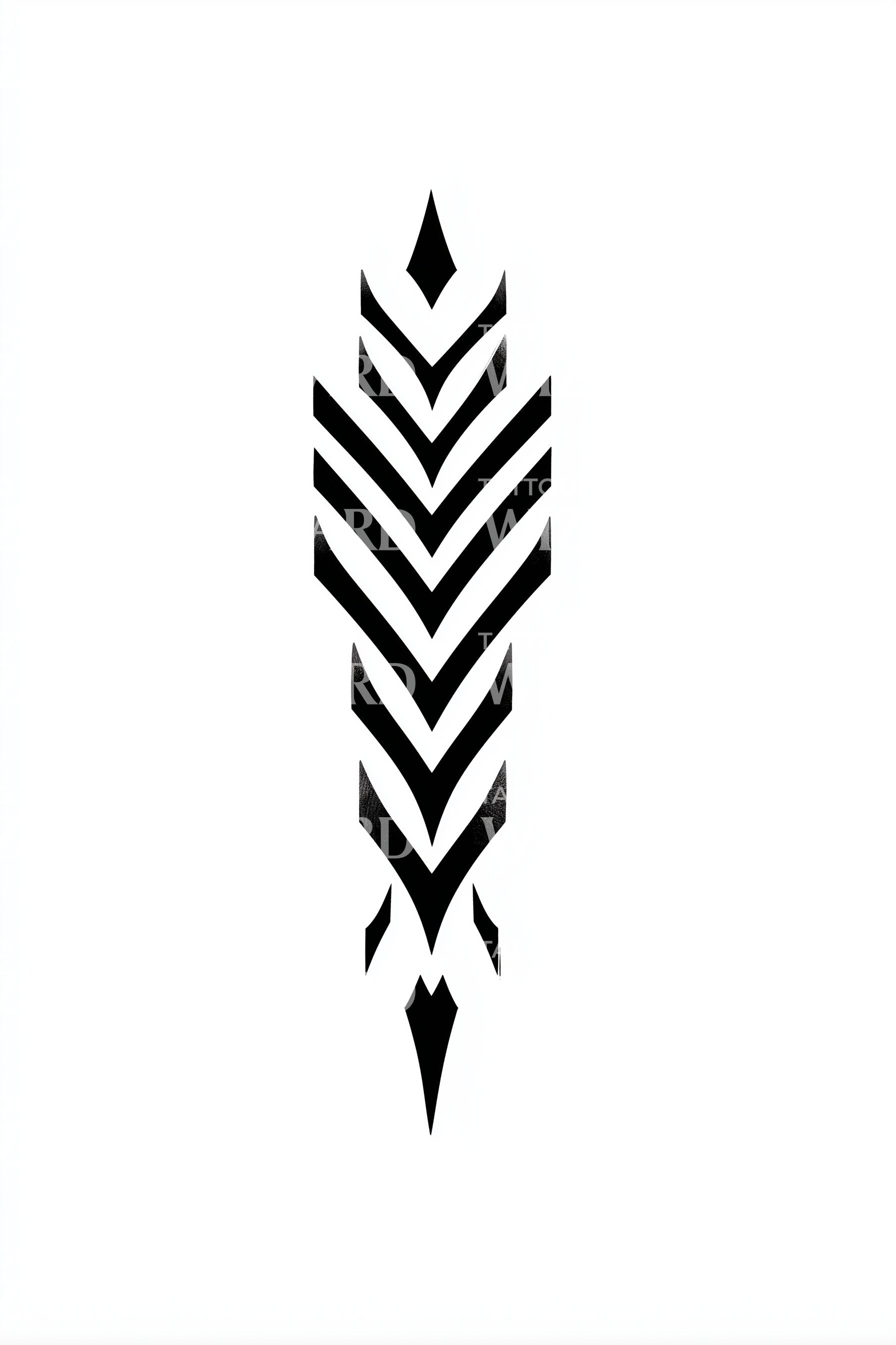 体验传统与现代美学的融合,这款大胆的部落纹身设计以人字形图案和抽象叶片元素为特色,展现出装饰性的优雅,轻松捕捉部落艺术的粗犷之美。这是一种大胆的风格表达,令人无法抗拒地迷人。
