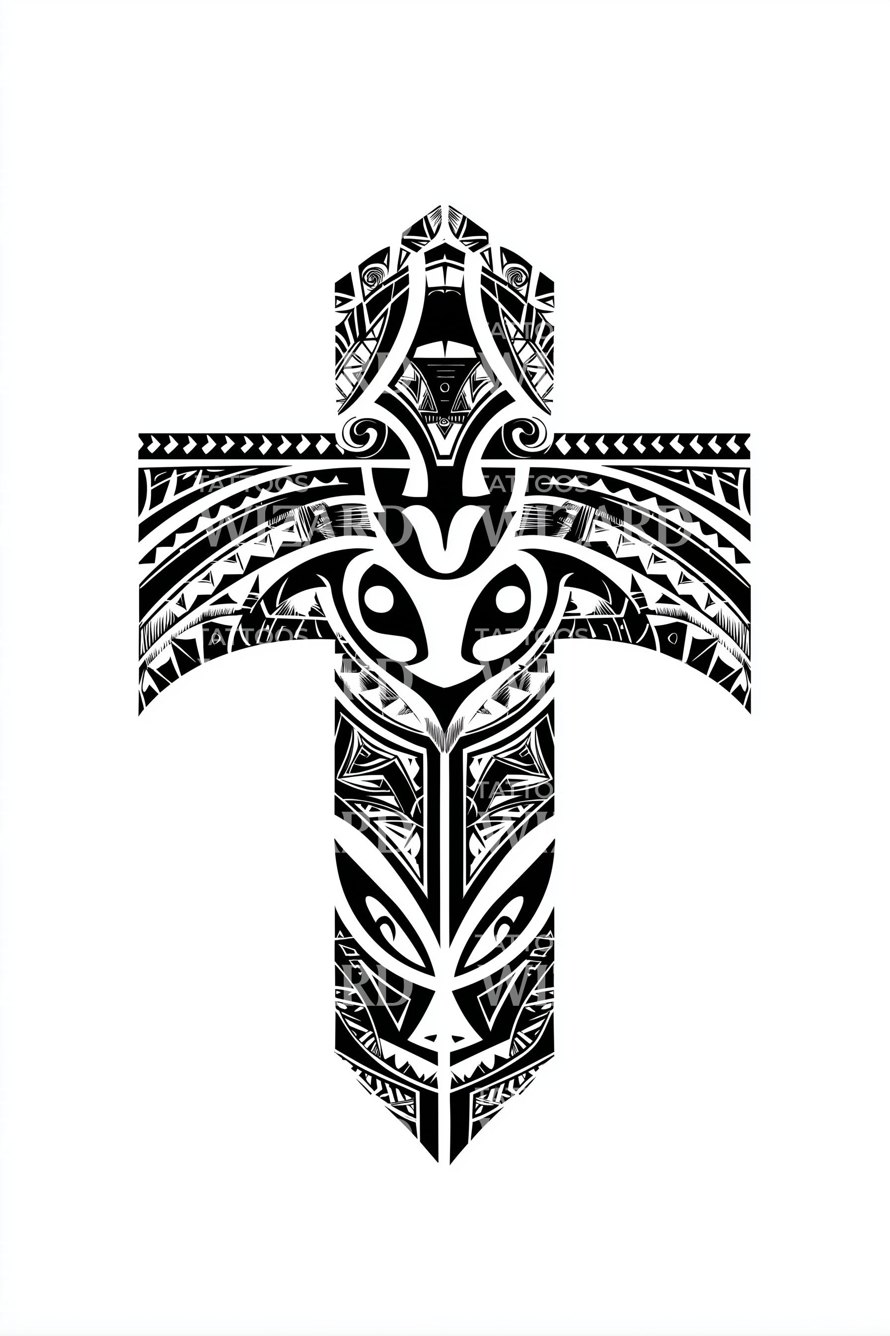 沉浸于这款部落人字形十字架纹身设计的跨文化精致之中。它巧妙地将黑色部落图案交织成一个十字架,富有创意地诠释了信仰。凭借其广泛的魅力和深刻的象征意义,这款纹身是传统勇气、精神信仰与美学优雅的完美象征。