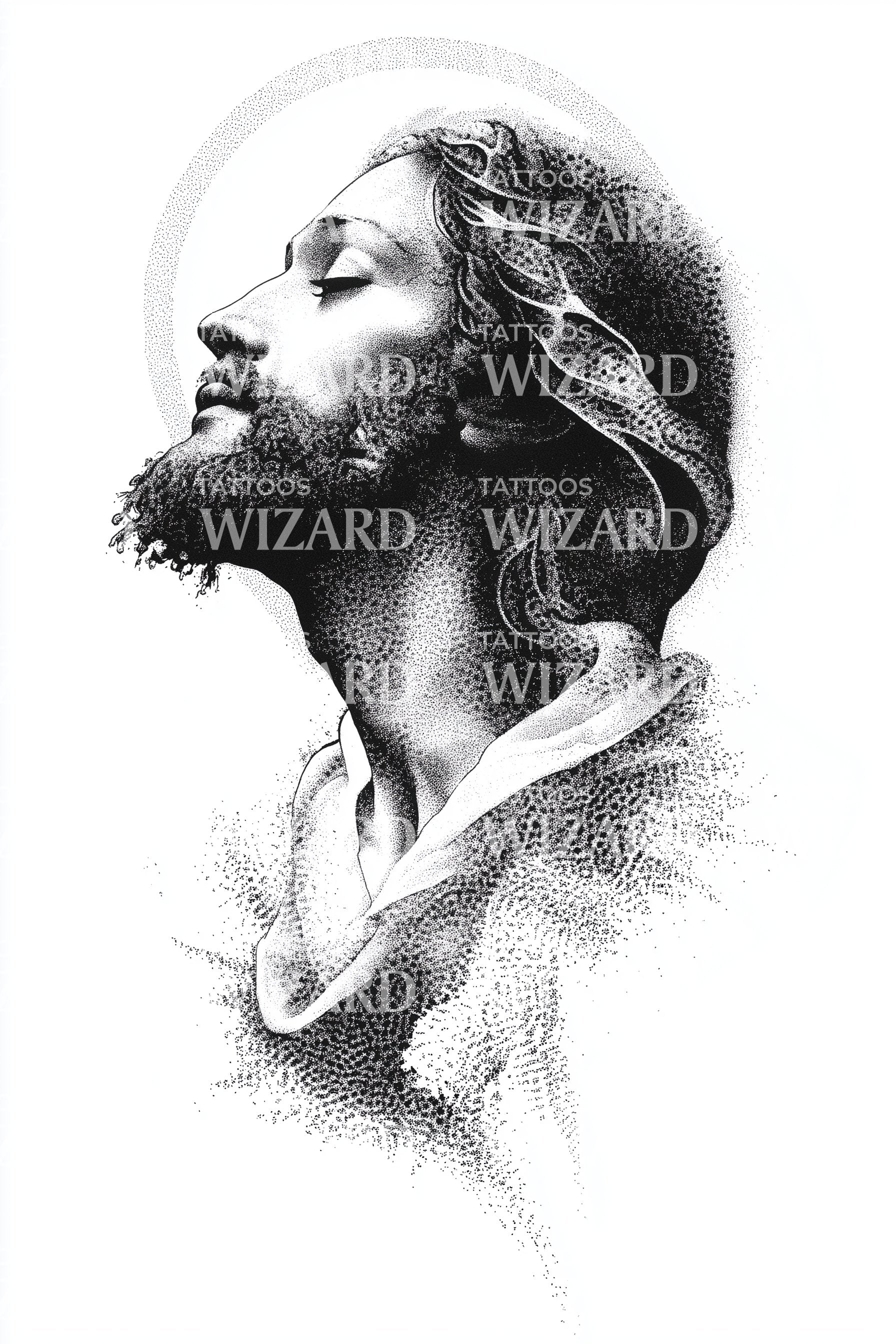 用这款卓越的点描纹身设计捕捉你信仰的精神本质。一幅令人惊叹的基督肖像,采用细致的点描技法,展现坚定不移的虔诚。这不仅仅是墨水,而是你救主被恩典包裹的永恒写照。个性化你的信仰,展示你的承诺。