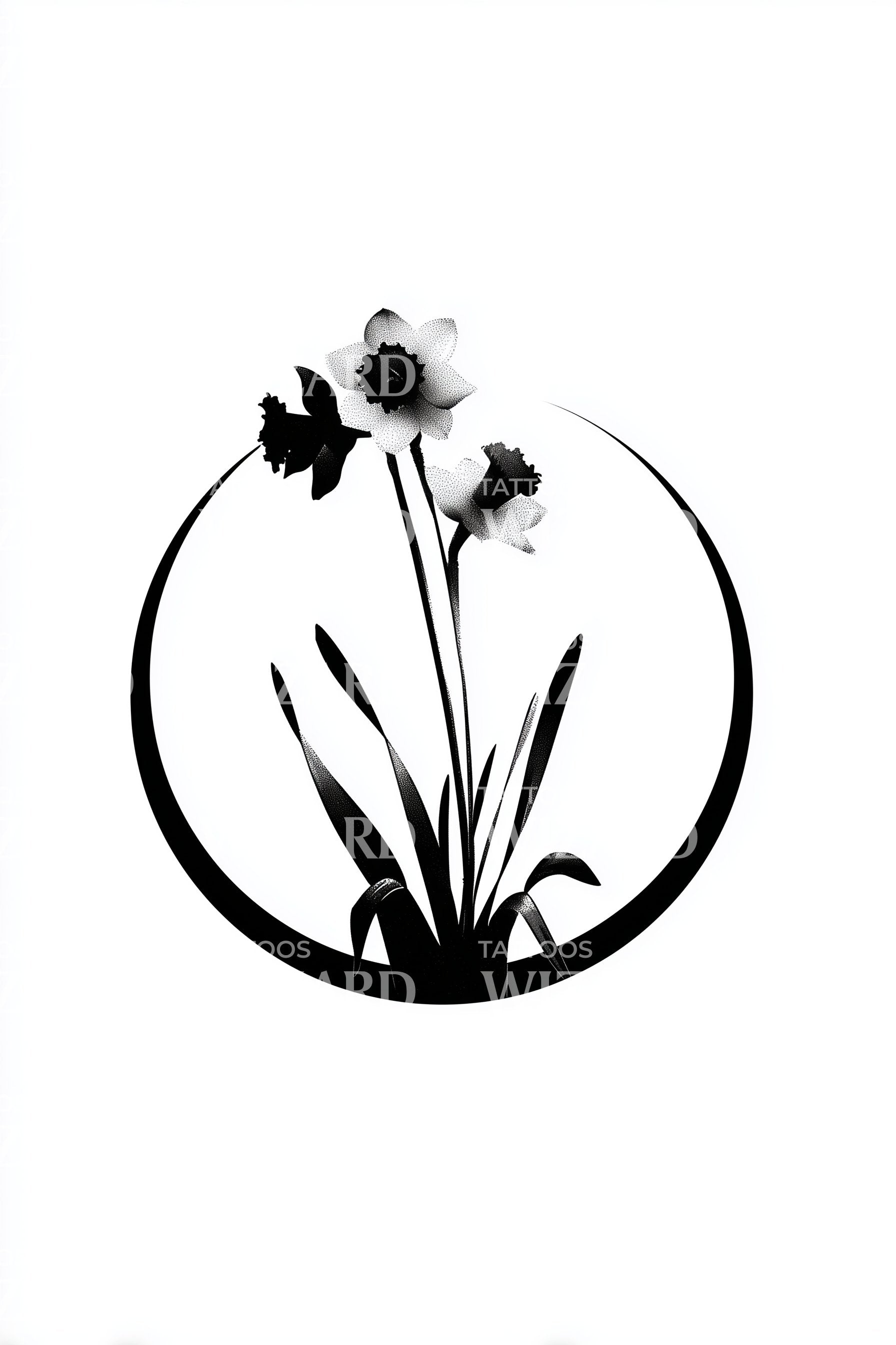 圆形扫掠水仙花纹身设计
