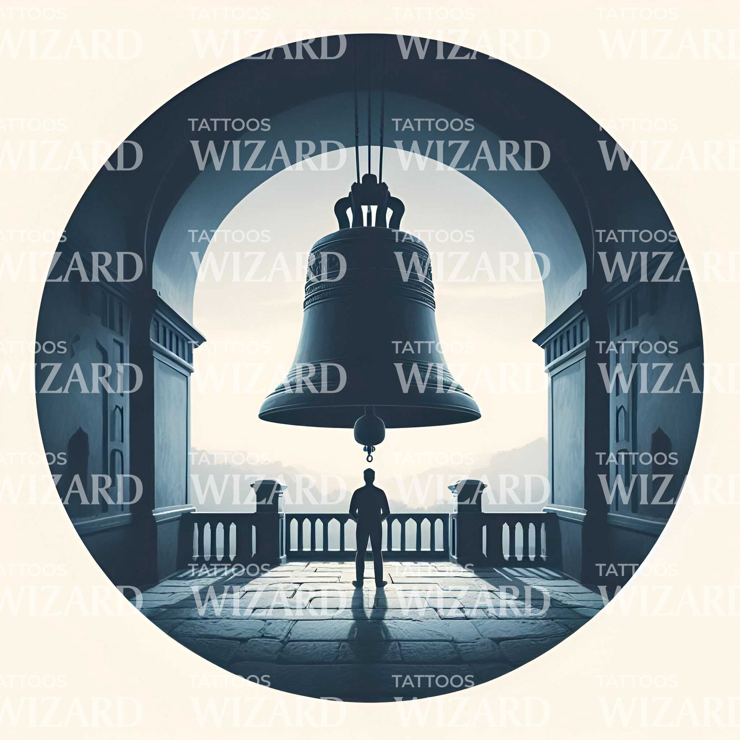 这个受电影启发的纹身设计是一件杰作,以插图的方式融合了时钟、塔楼、阳台和钟。它体现了精湛的工艺,捕捉了具有深刻象征意义的建筑元素的永恒魅力。非常适合任何寻求细致、发人深省的墨水艺术作品的人。