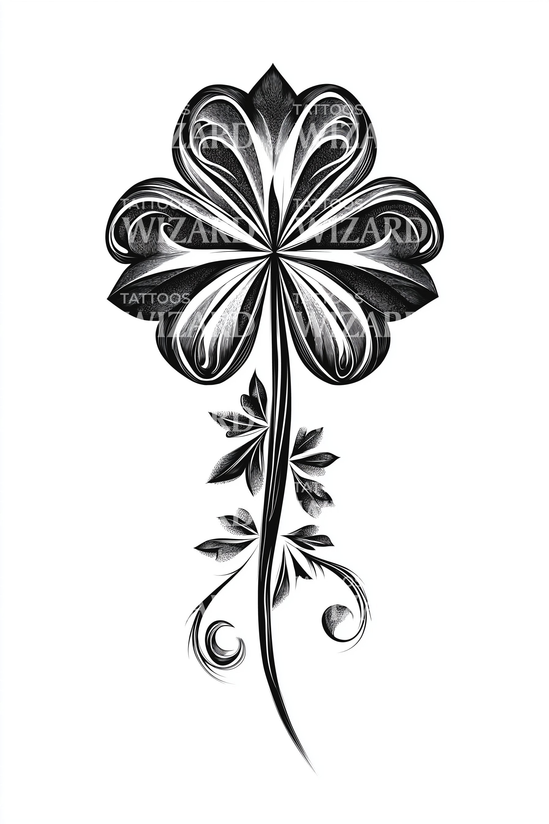 沉浸于大自然的优雅之中,这款花卉三叶草纹身设计象征着幸运与爱尔兰传统,完美融合了花卉艺术的细腻美感与四叶草的魅力。是追求独特优雅与好运永久印记的理想选择。