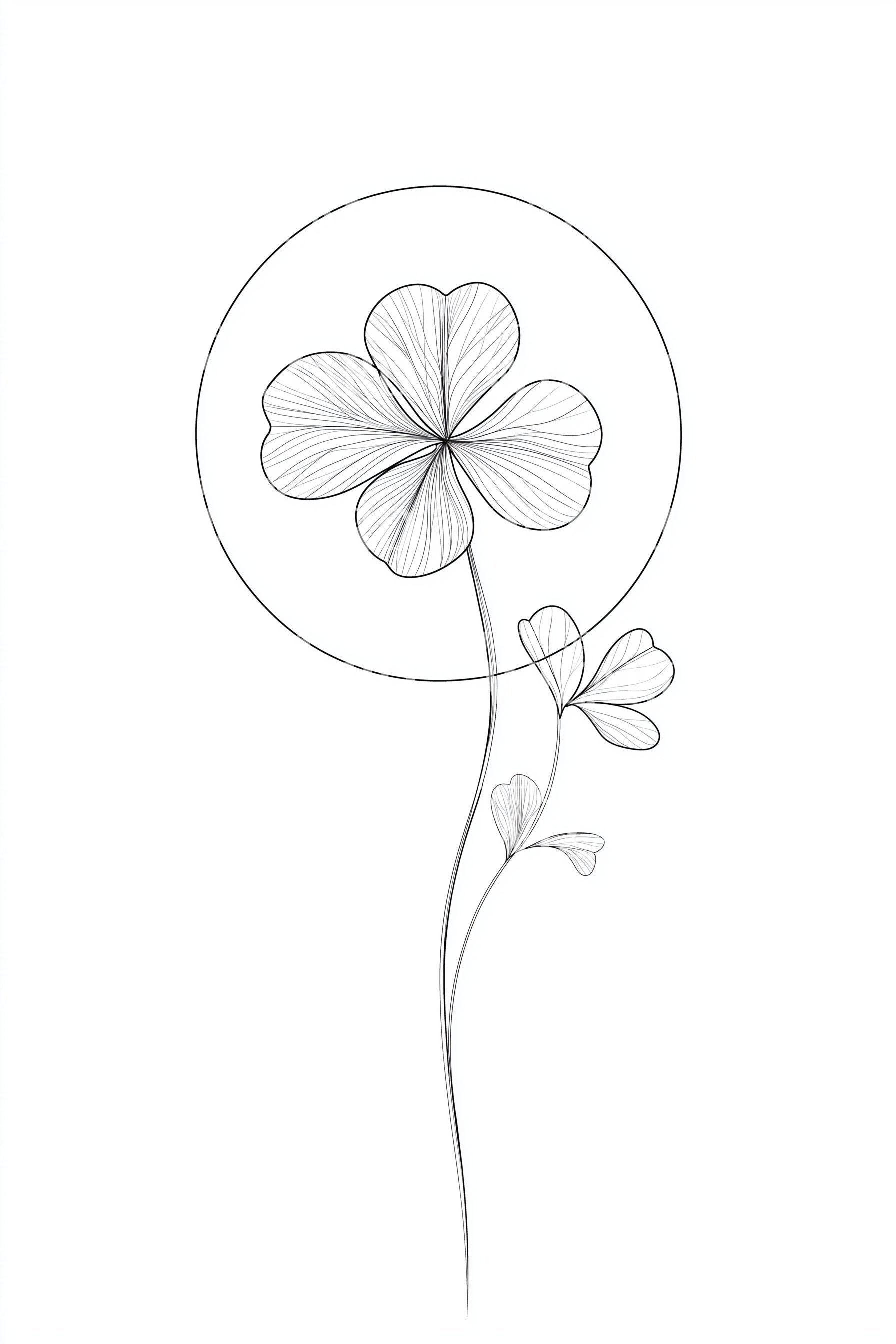 轻柔的线条勾勒出一个精致的三叶草,安静地嵌入圆圈之中,将植物的优雅与极简的平衡完美融合。干净的轮廓和通透的留白空间营造出细腻而富有意义的表达——幸运、更新与宁静汇聚于这一极简而精致的图案。非常适合佩戴于手腕、脚踝或耳后,真正展现出永恒、轻盈且优雅内敛的美感。