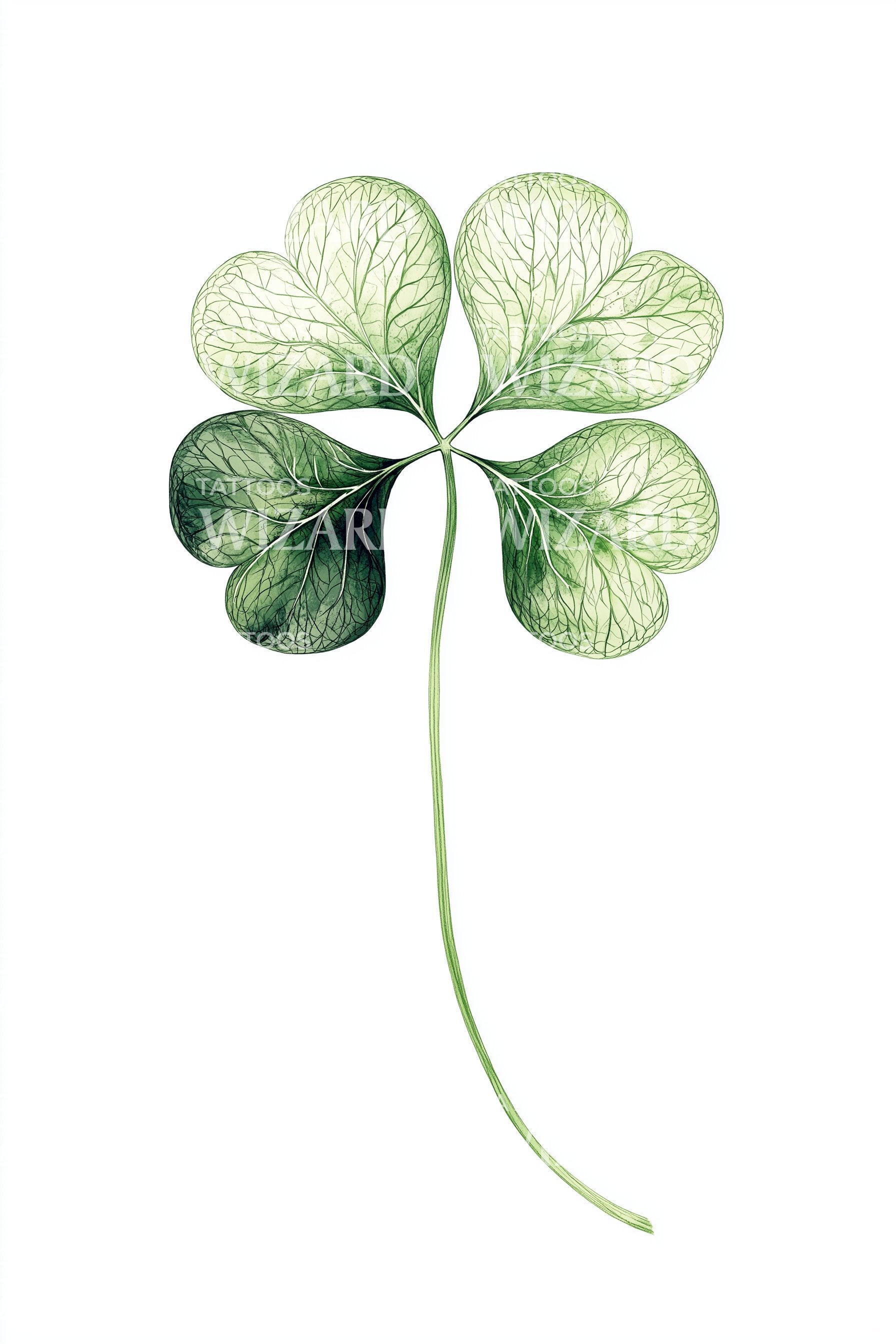 这款细线纹身设计巧妙地结合了精致的三叶草图案与细腻的脉络细节。鲜艳的绿色调充满生机,象征着幸运与自然的美丽寓意。非常适合那些在纹身选择中追求低调优雅的人士。