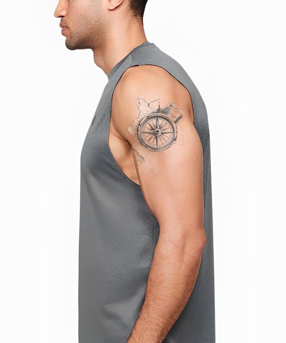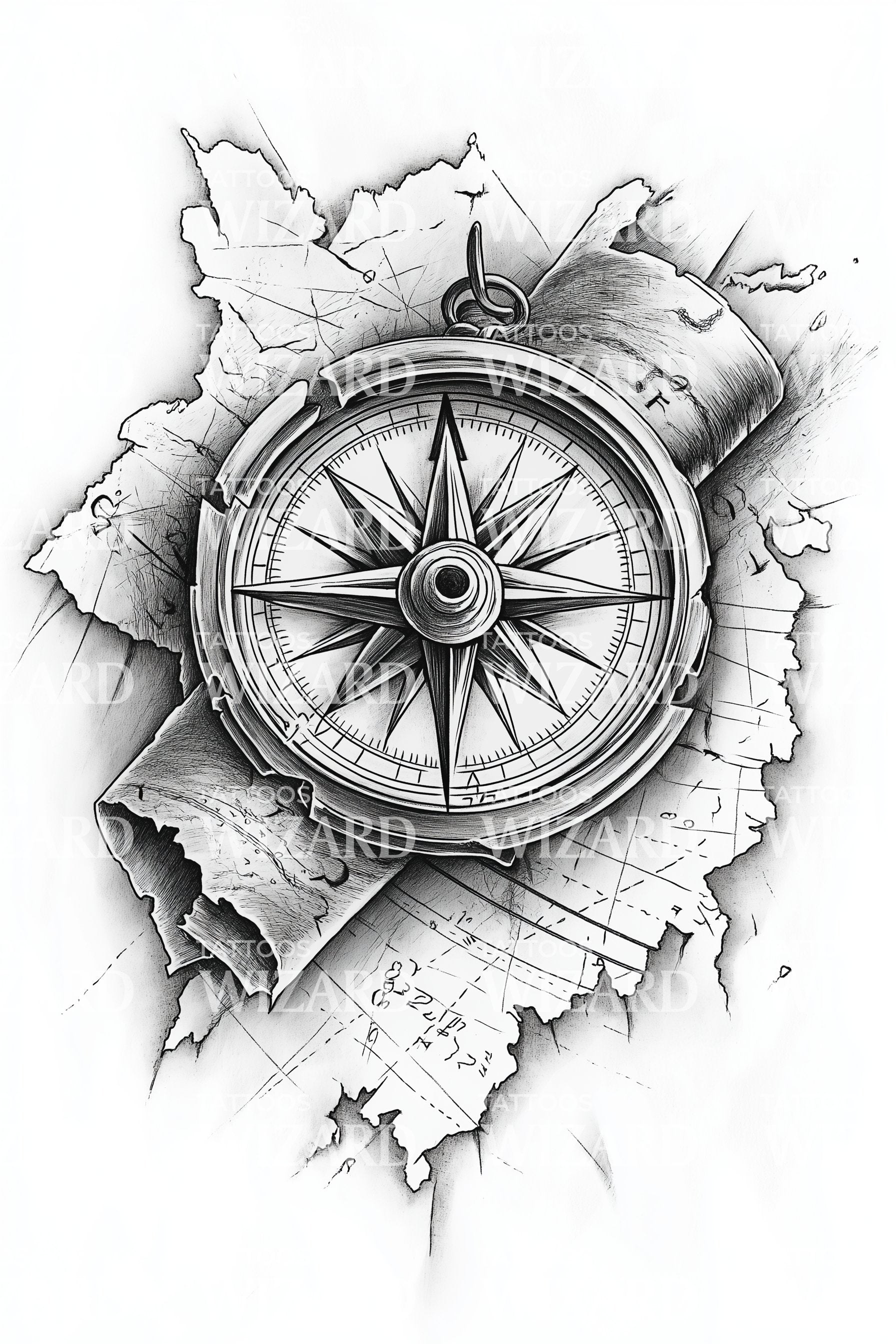 沉浸于复古魅力,这款插画风纹身设计展现了裂纹石材效果。精致的罗盘与玫瑰元素象征着探险者的无畏精神。这个含蓄而强烈的设计以引人入胜的解构风格,生动诠释了传统符号的魅力。