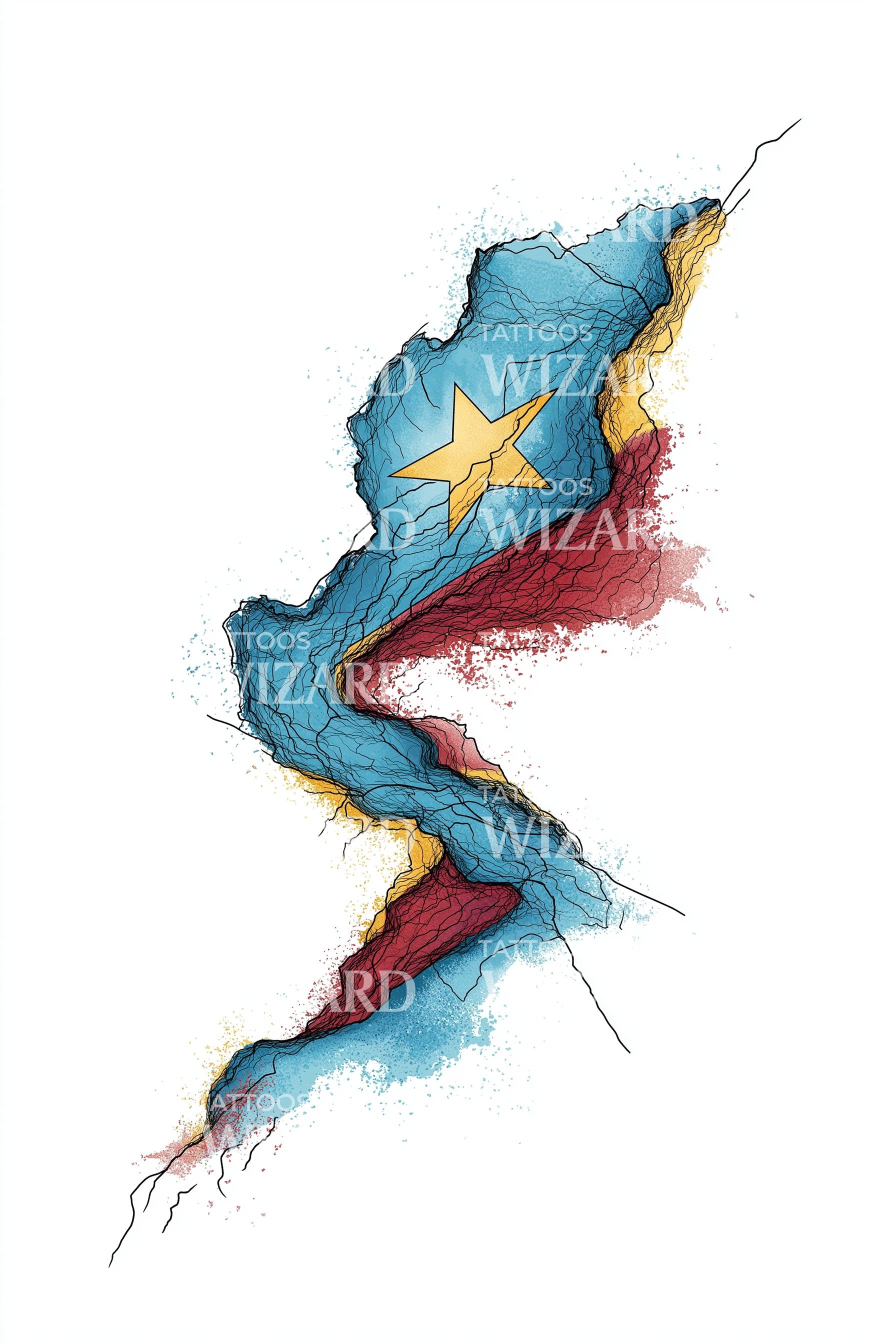 电光水彩能量在肌肤上弧形流动:一道斜斜的蓝色闪电划破,裂变成闪烁的星辰。柔和的晕染渗透出耀眼的高光,平衡了大胆的动感与轻盈的透明感。动感而细腻,这款设计捕捉了风暴孕育的力量与天体的奇迹——醒目、现代,且轻松适合任何部位佩戴。