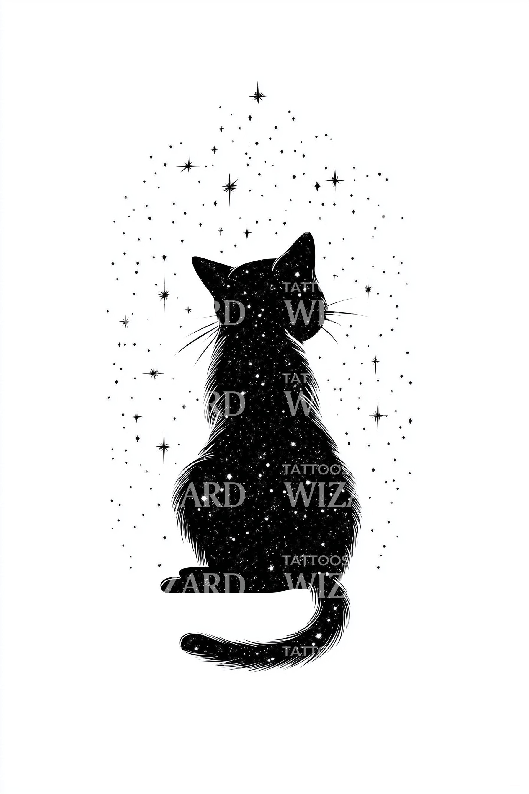 宇宙猫剪影纹身设计