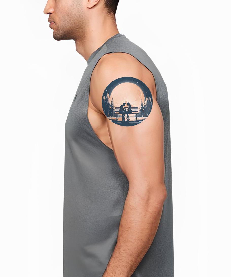 通过这个迷人的老派甜心纹身设计,回到过去。字母与诗歌的浪漫融合,在月光下熠熠生辉,使这个设计成为经典而成熟的选择。非常适合那些热爱文学、拥有复古美学的人,他们渴望过去的爱情与激情时代。