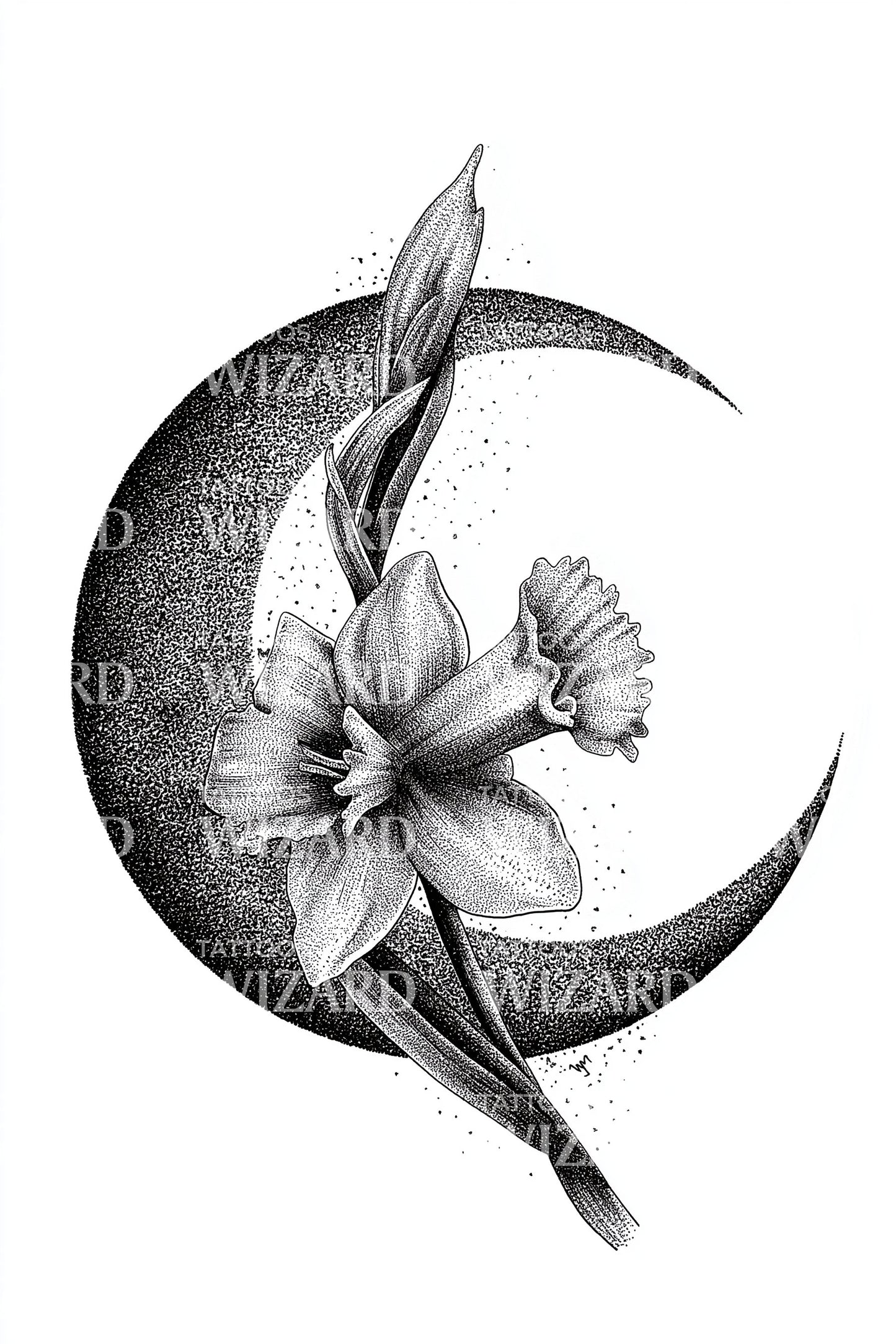 水仙花新月点刺青设计