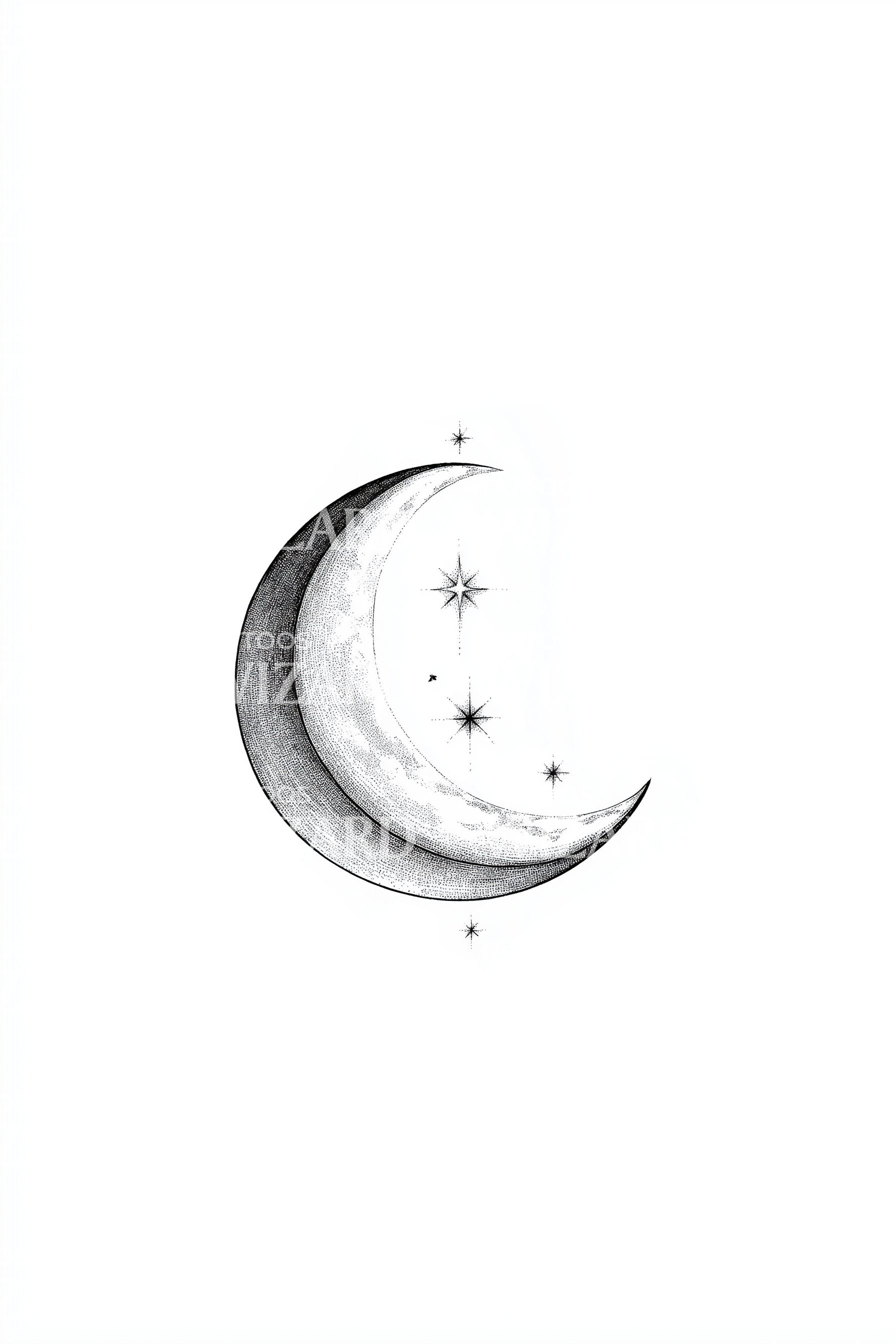沉浸于夜空的魅力之中,这款极简纹身设计展现了一弯优雅的新月,环绕着闪烁的星星。设计体现了夜空静谧而充满活力的美,为您的肌肤艺术带来细腻而深刻的表达。