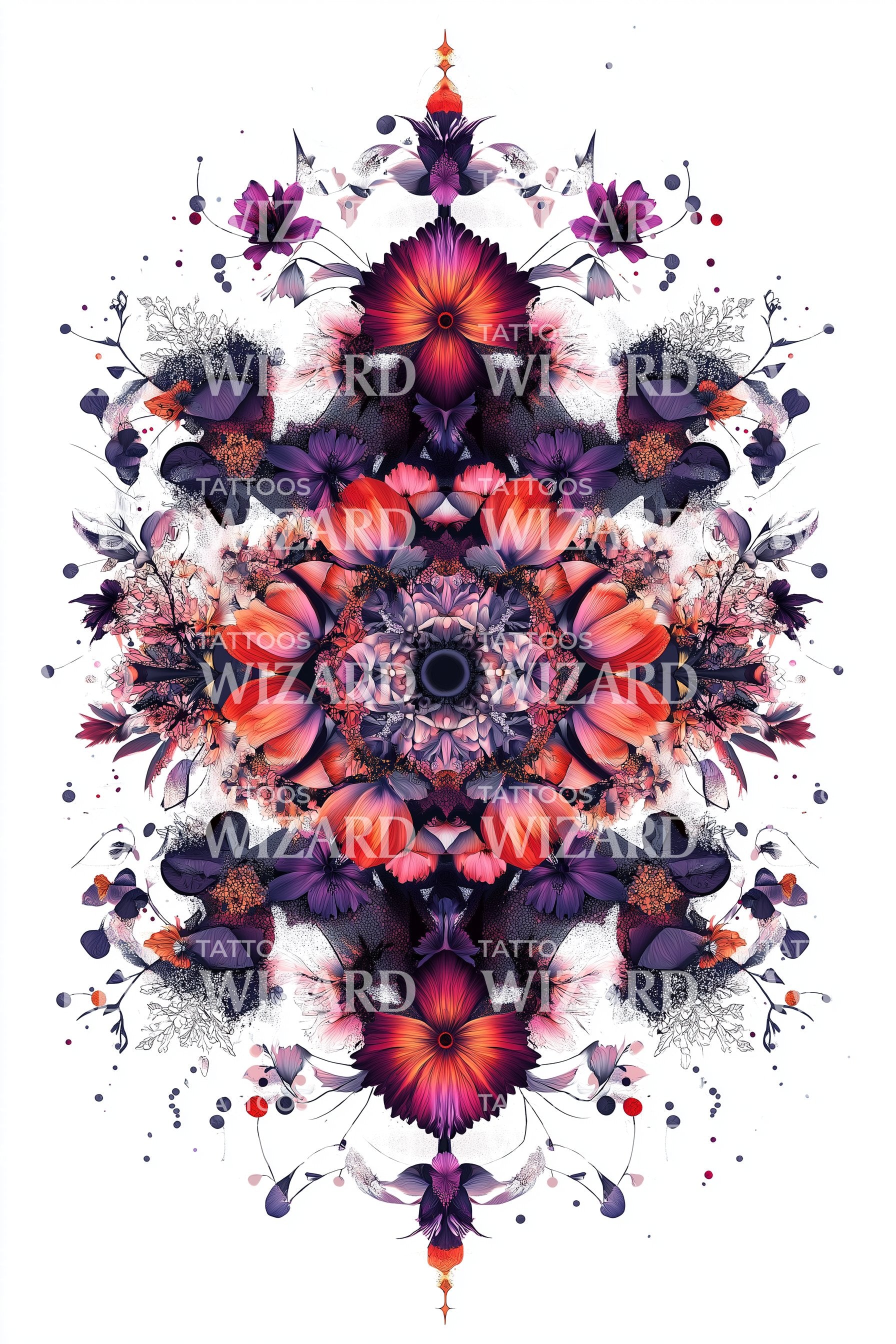 沉浸于我们深红色曼陀罗纹身设计的大胆之美。充满抽象对称,体现了泼墨风格艺术的流动形态。从中心辐射出的精致花瓣构成复杂的图案,散发出神秘优雅的气息,适合每一位纹身艺术爱好者。