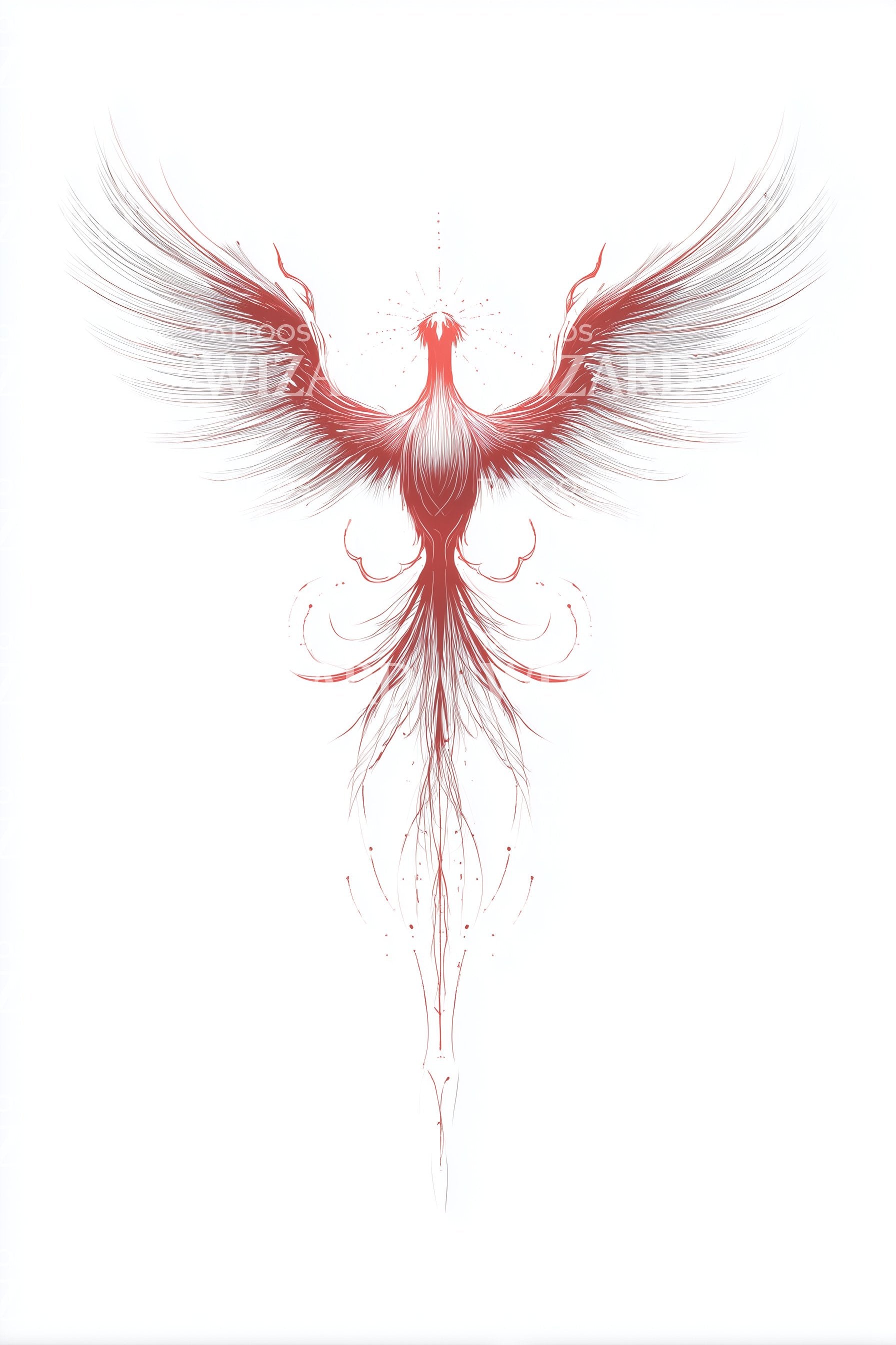 这款极简纹身设计体现了飞翔中猩红凤凰的优雅力量。炽热的色调美丽地象征着重生,呼应了这只神话生物传奇的蜕变循环。作为对自由与坚韧的含蓄表达,这一设计以其炽烈的美学和象征深度提升了任何造型的格调。