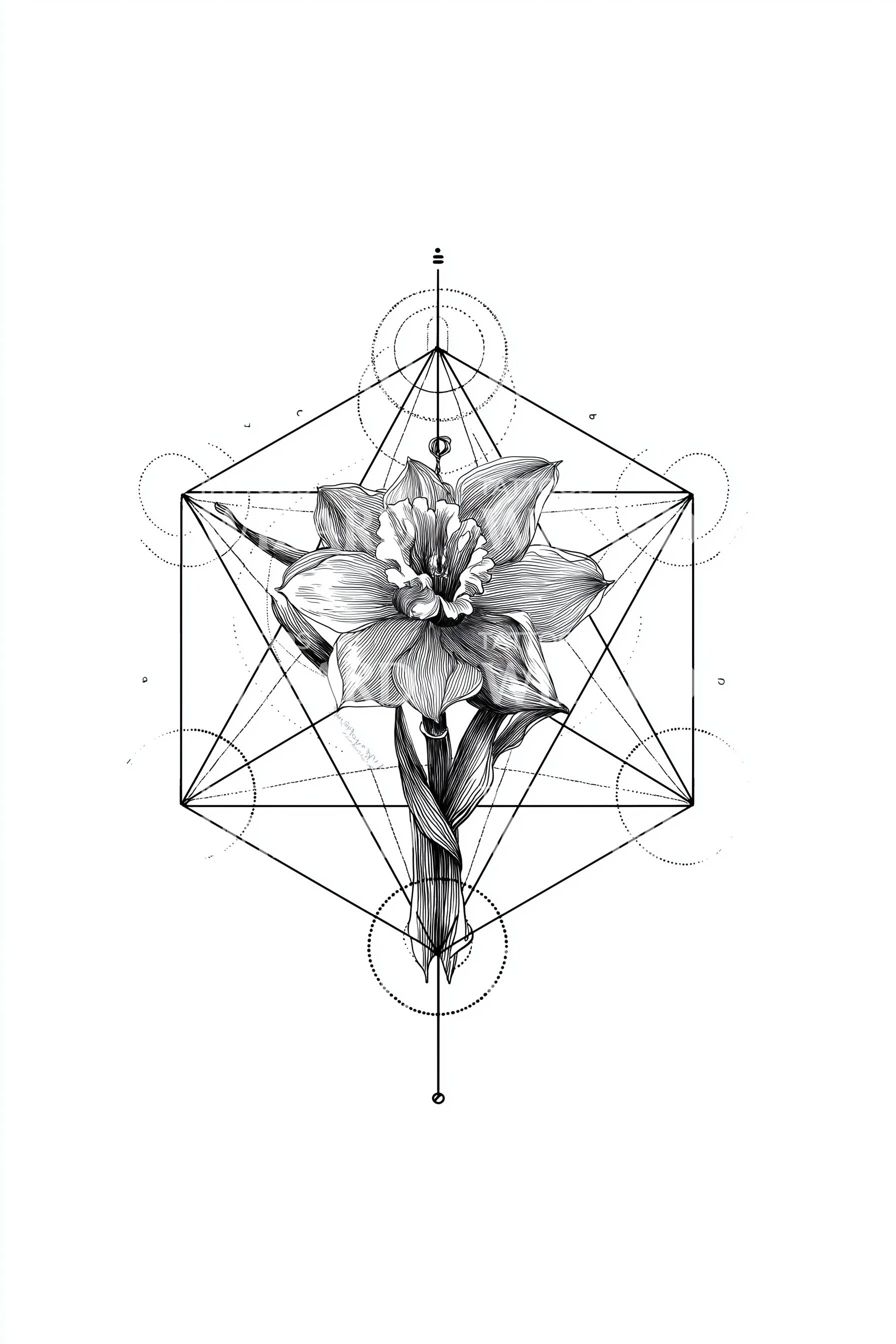 这款精美的纹身设计融合了几何图案与精神象征。以水晶核心包裹在莲花曼陀罗中,精细的点描工艺增添了层次感和趣味。最终呈现出一款令人惊叹的精神几何设计,象征着和谐、清晰与重生。