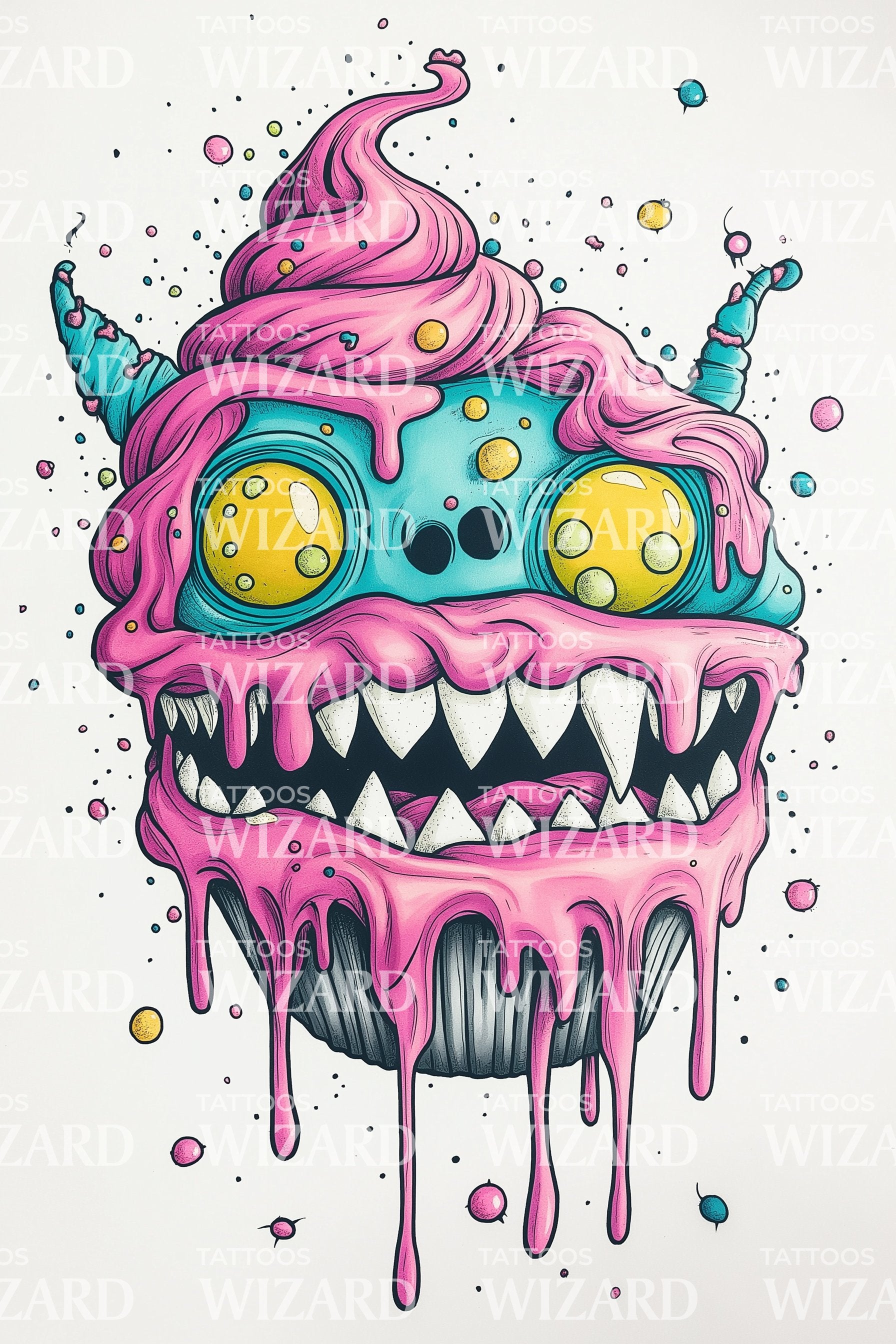 黏糊糊的纸杯蛋糕怪兽纹身设计