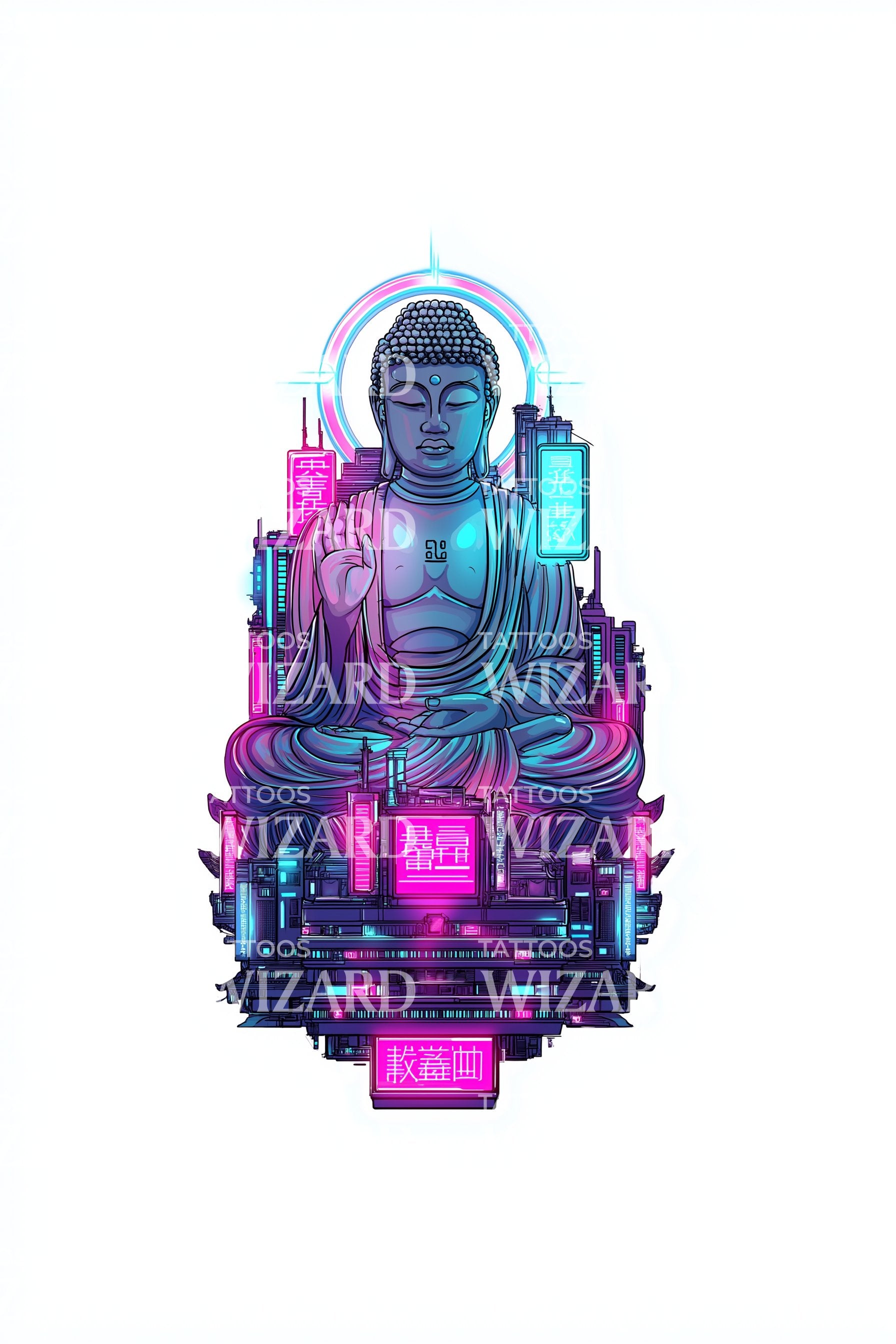 沉浸于这款充满活力的新派纹身设计中的灵性。以霓虹赛博朋克佛陀为特色,它点燃了传统与未来美学的独特结合。丰富多彩的阴影效果将你带入超越现实的维度,唤起深刻的精神氛围。非常适合那些寻求既前卫又深刻纹身的人。
