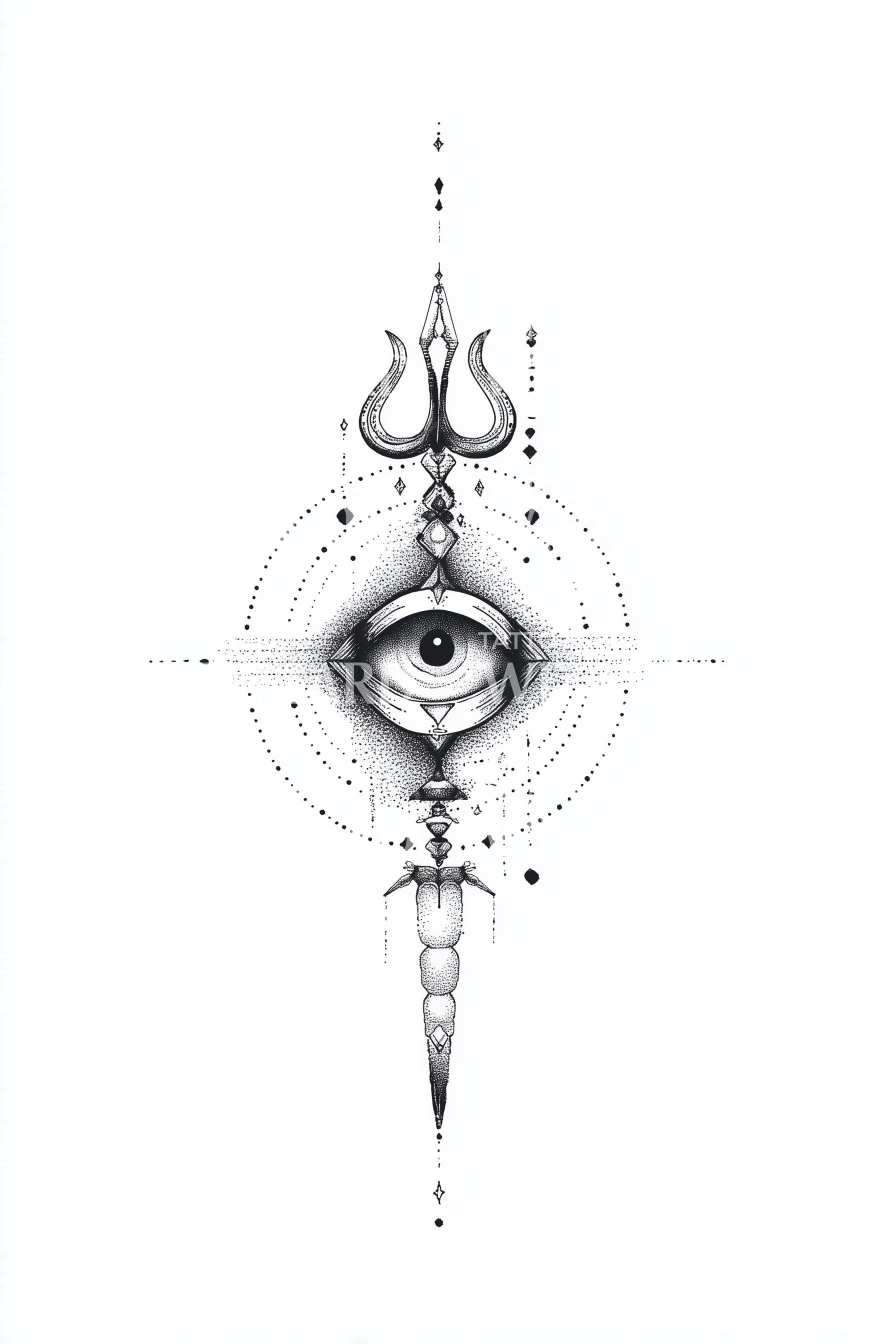 释放神秘与美感的独特融合,这款几何纹身设计。配以匕首和全视之眼,散发出神秘与神秘学的气息。彰显守护与保护的意味,这款黑色纹身是力量与警觉的时尚象征。