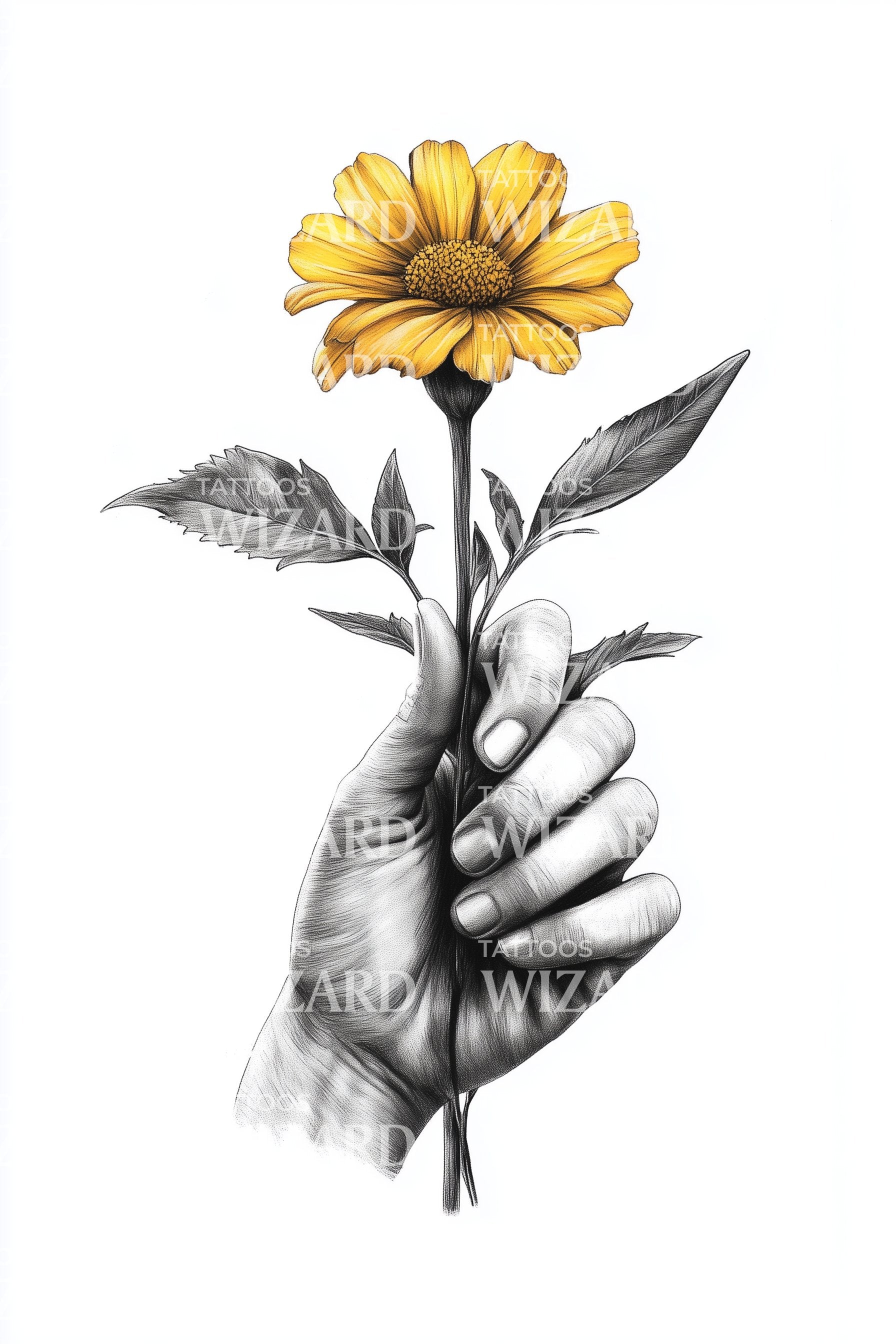 沉浸于大自然的美丽中,感受我们逼真的手部雏菊纹身设计。精心打造,细致入微,通过盛开的花朵象征着希望。这款作品是那些希望在皮肤上铭刻每日乐观提醒者的绝佳选择。
