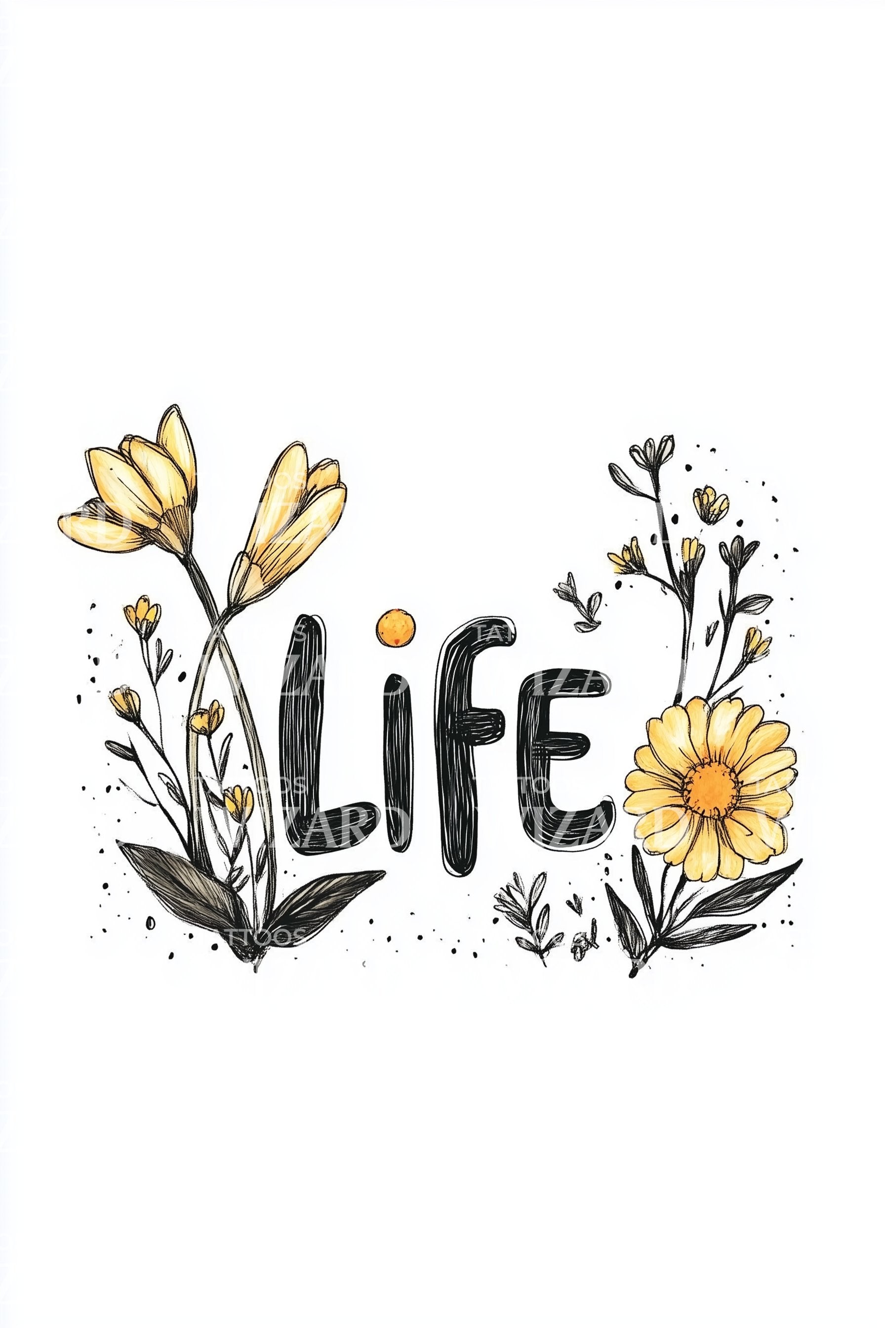 这款细线纹身设计巧妙地融合了大自然的魅力与文字的力量。以一朵精致的雏菊为特色,象征生命与希望,辅以极简字体,呈现出简洁而低调的美感。这是对大自然永恒之美和人类精神韧性的颂歌。