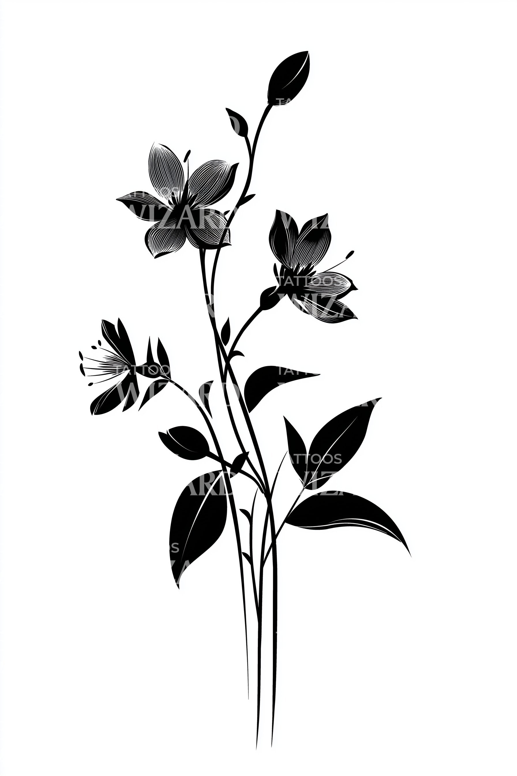 用我们的黑色工艺茉莉花纹身设计体现神秘感。这件复杂的作品展示了标志性茉莉花和叶子的黑色剪影。深黑色的花卉图案形成强烈对比,令人惊叹地致敬了黑色工艺艺术的美感。是大胆个性的完美点缀。