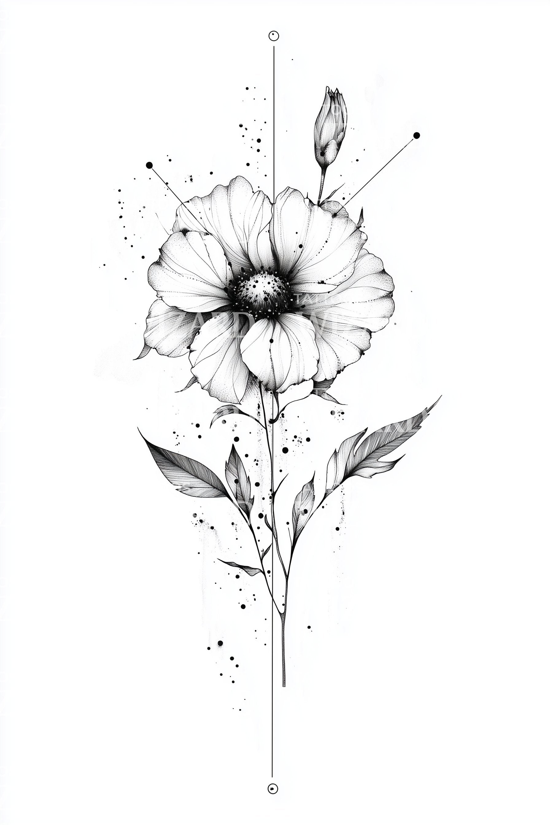 这款精致的细线纹身设计体现了极简主义与优雅。每一条细腻的线条都展现出一幅花卉杰作,在细腻与魅力之间创造出引人注目的平衡。以简约而精致的花茎为特色,是追求低调美感纹身艺术者的理想选择。