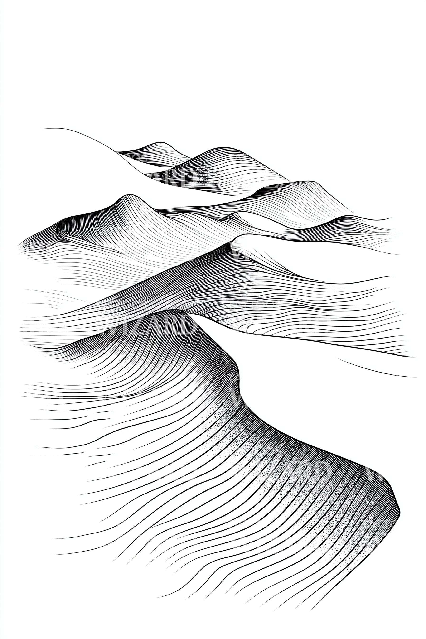 Fineline dunes ripple in airy contours, wind-sculpted ridges and minimal space creating a serene desert panorama. Lines speak of resilience, migration, and time’s patient shaping of sand. Wearing it feels calm, steadfast, adventurous. Ideal placements: forearm for directional flow, ribcage for curvature, calf for vertical sweep, spine for horizon.