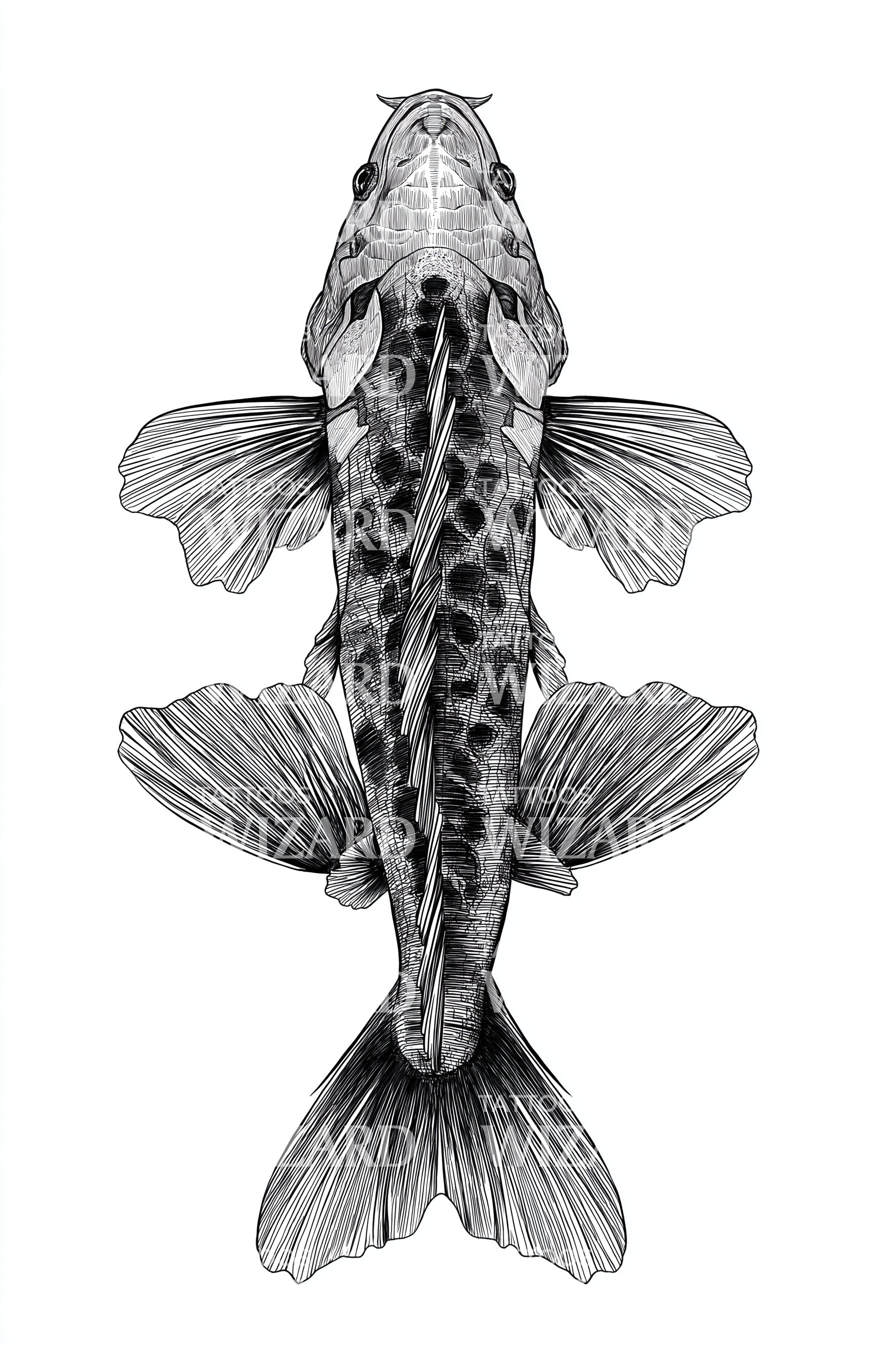 Detailed Catfish Tattoo Illustration