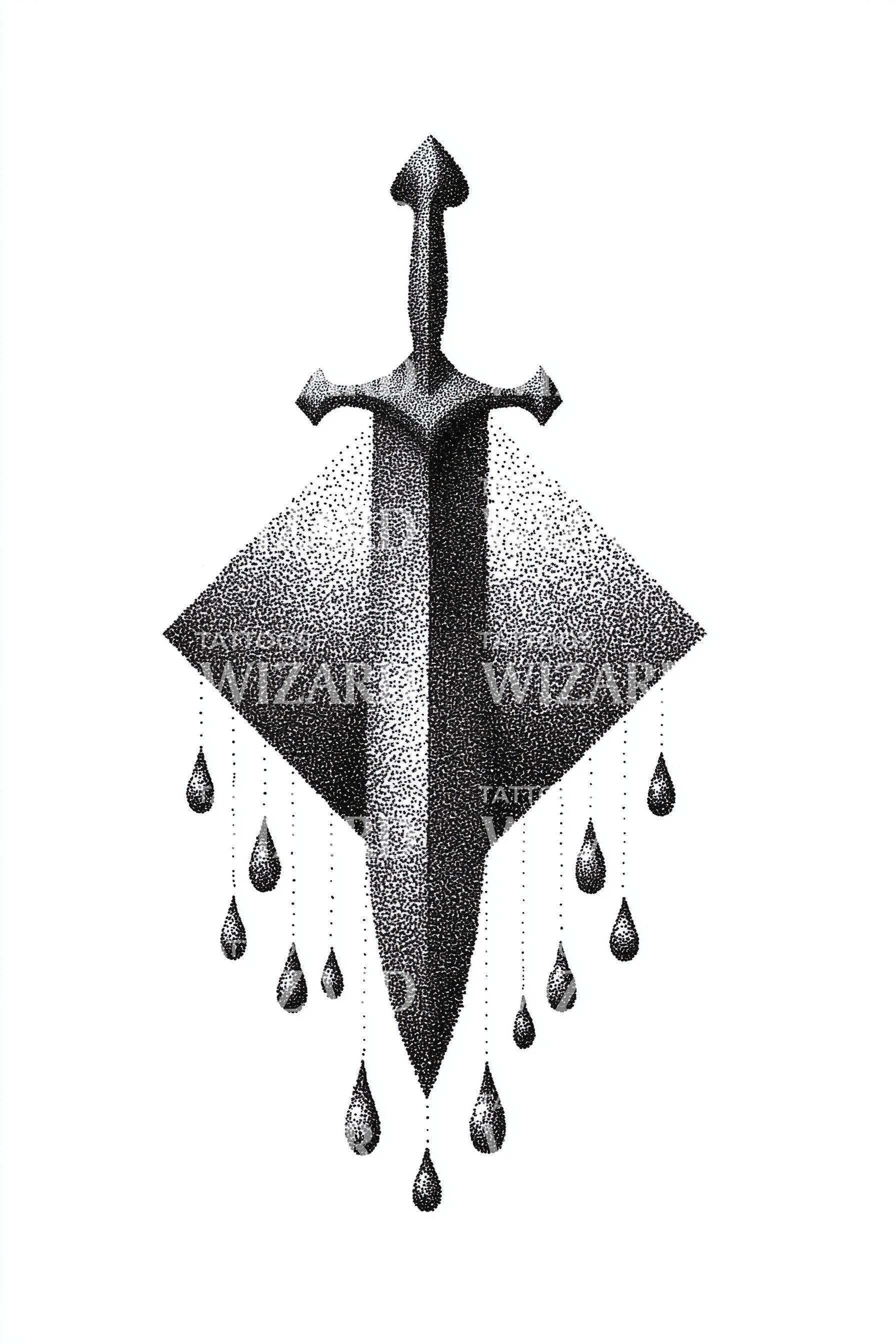 沉浸于这款点描纹身设计的神秘魅力。象征力量与坚韧,它展现出一把锋利的匕首刺穿耀眼的钻石,巧妙点缀的点状图案营造出滴血的幻觉。作为克服困难的象征宣言,它不仅是一款纹身,更是一种个人赋能的利器。