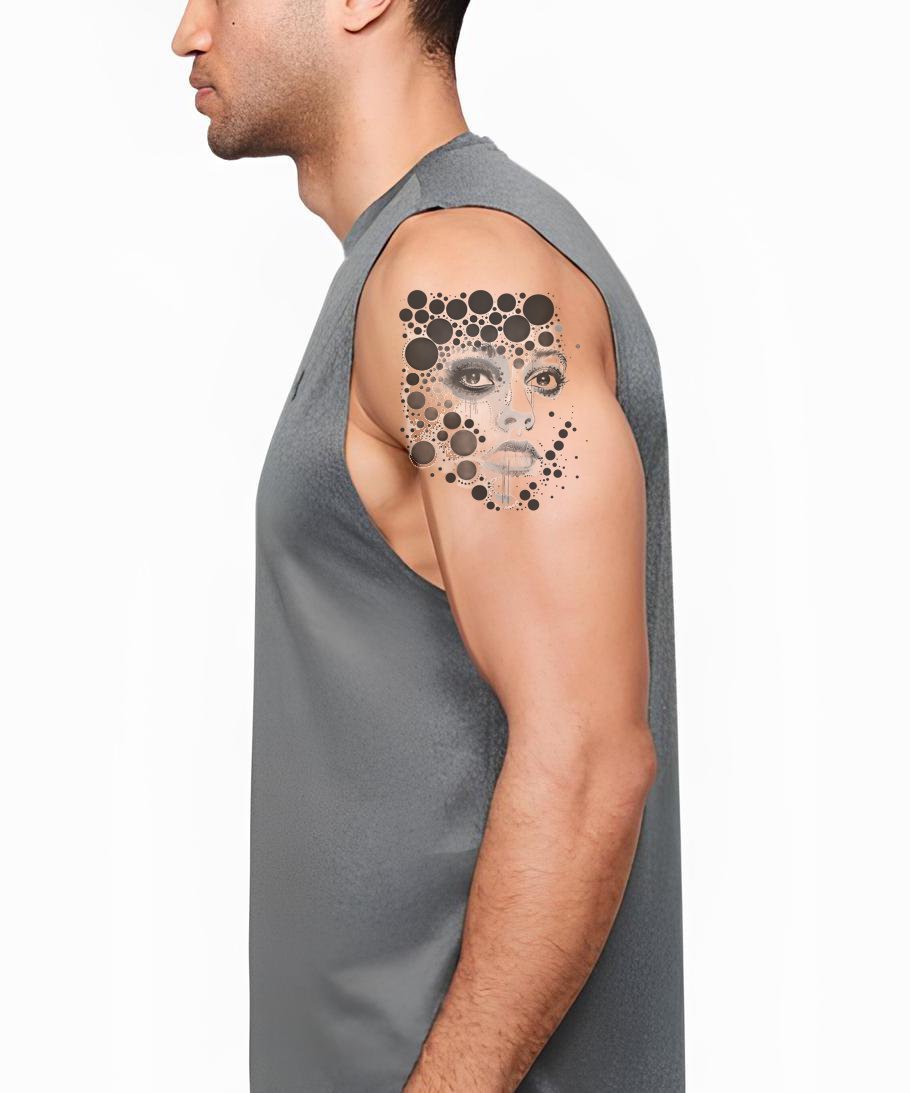 展示您独特的风格,选择我们创意且原创的黑灰纹身设计。这幅现代女性肖像,采用点刺技法精心制作,展现了现代与传统艺术的融合。它完美体现了黑灰色调中点与线的完美结合。非常适合大胆而时尚的人士。