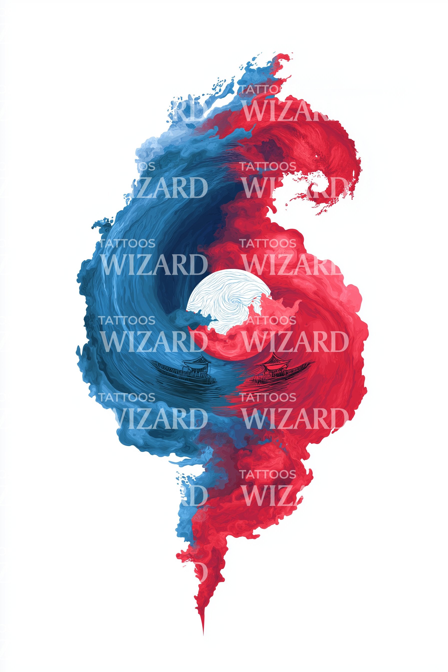 流动的水彩漩涡在鲜艳的红色与电光蓝中碰撞,捕捉运动的原始能量与双重性的静谧平衡。这款抽象设计如活生生的颜料般在肌肤上流淌,随着每一个曲线变幻——为那些被对比、转变与无限流动所吸引的灵魂打造的宣言之作。
