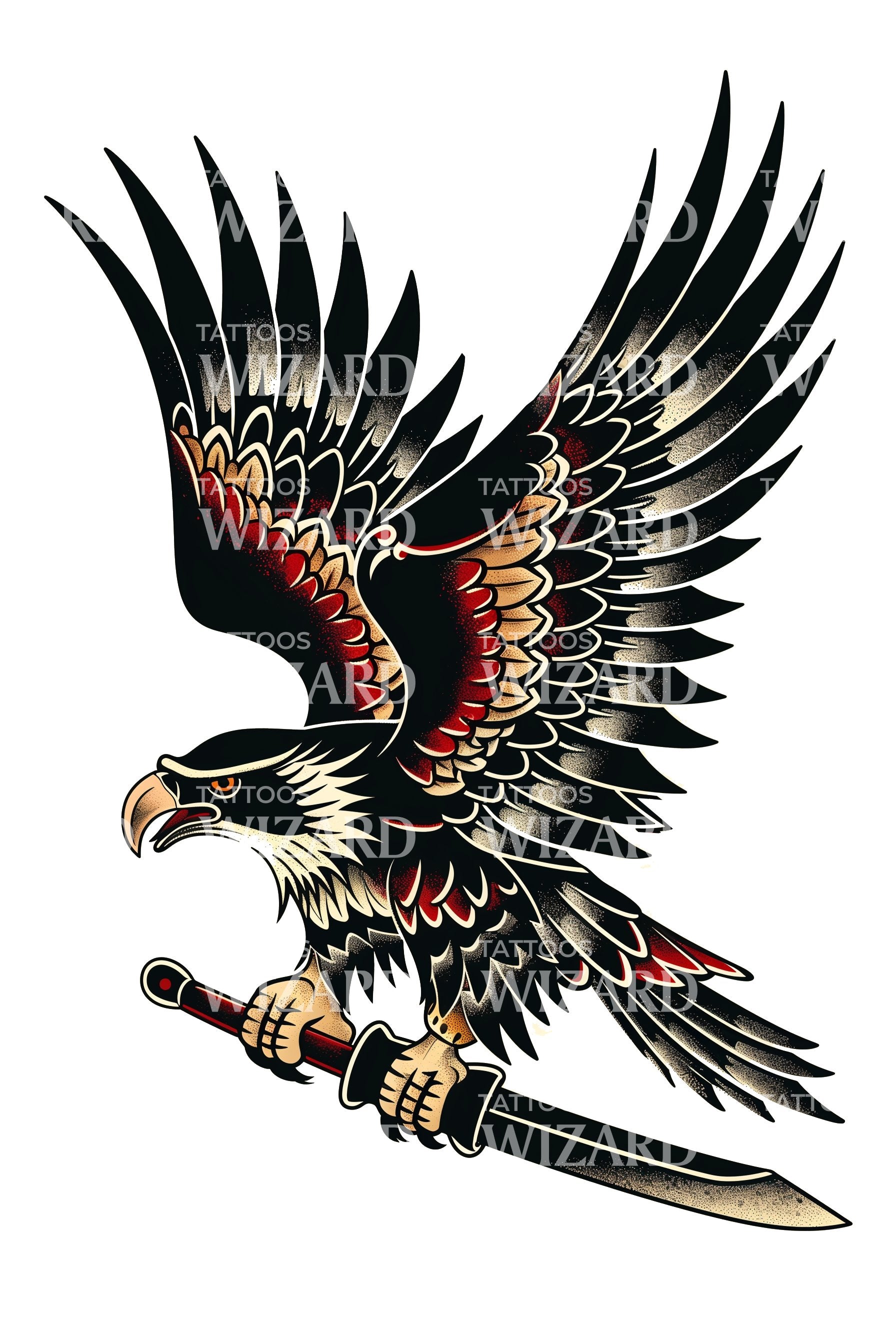 释放你内心的叛逆者,选择我们的老派鹰纹身设计。唤起自由和力量的感觉,这幅酷炫的艺术作品以精美细致的鹰、羽毛和翅膀捕捉了美国的精髓。这不仅仅是一只鸟,它是一个大胆的声明。无畏地表达你的个性。