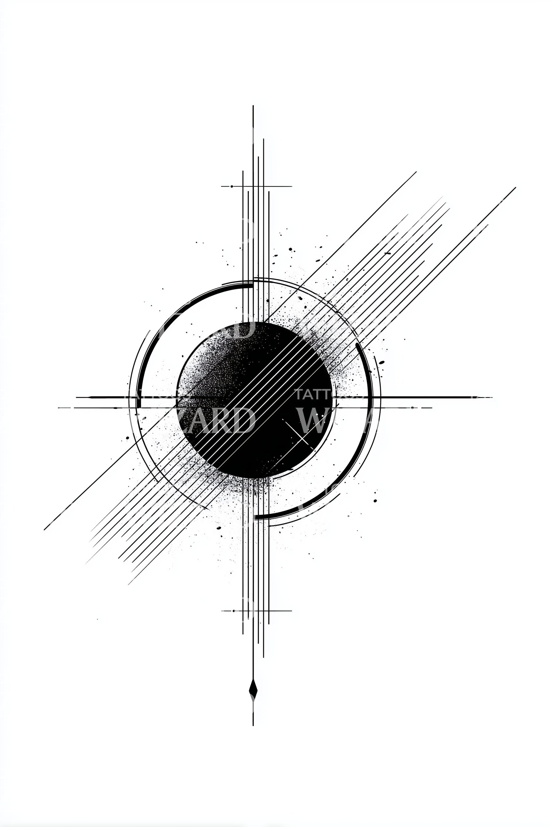 体验科学与艺术的融合,感受我们的几何日食纹身设计。这是一款极简主义的黑色线条素描,融合线条与形状,创造出抽象而有结构感的日食图案。非常适合钟爱鲜明对比与沉稳优雅的你。