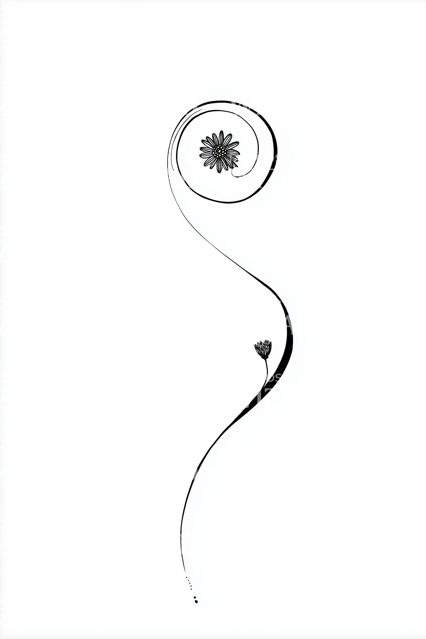 用我们极简风格的纹身设计装点自己,灵感源自神秘优雅的日食。这款作品展现了一根茎干化作通向月亮的空灵波浪的简洁而迷人的表达。单一流畅的线条为设计增添了别致的极简魅力。