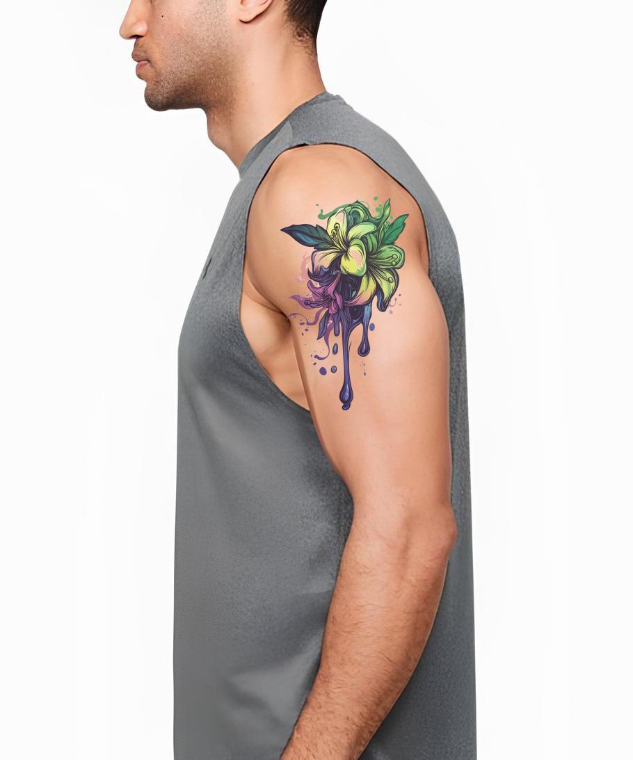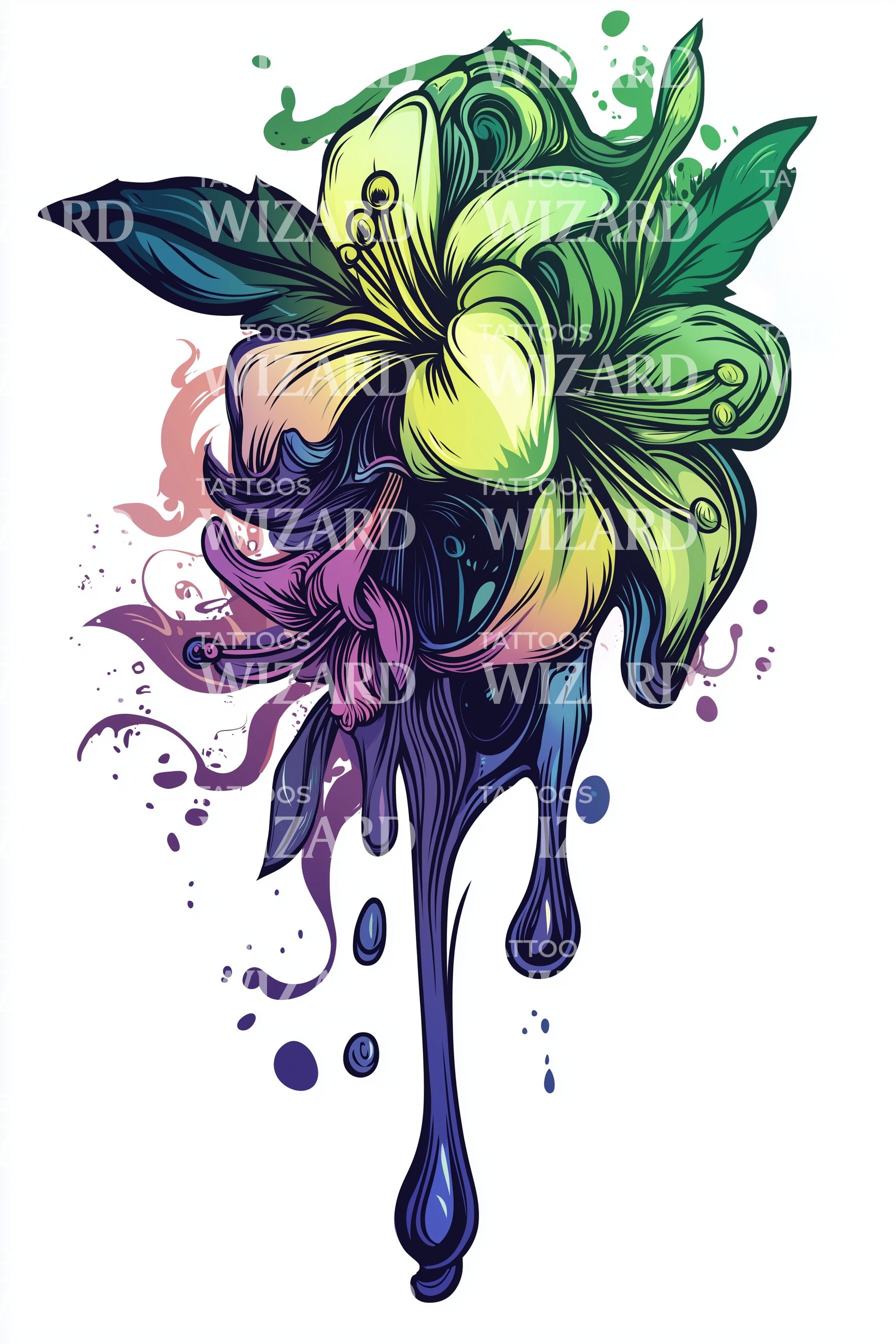 体验花卉优雅与艺术表达的融合,尽在我们的水彩百合纹身设计中。此作品以翡翠色滴墨和墨迹效果为特色,呈现出百合花的细腻美感。这不仅仅是一款纹身;它是可穿戴的、永远绽放的肌肤艺术。