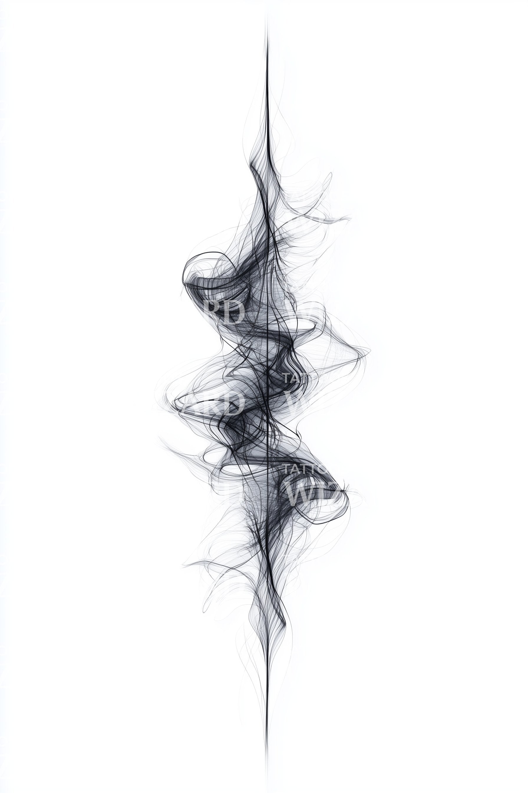 Charcoal-fine lines rise like smoke around a single spine, a minimal sketch of motion and breath. Abstract whorls pulse with energy, mapping currents of change and equilibrium. Worn on skin, it feels like alignment in motion, a quiet flow that steadies, ignites, and continuously renews through every breath.