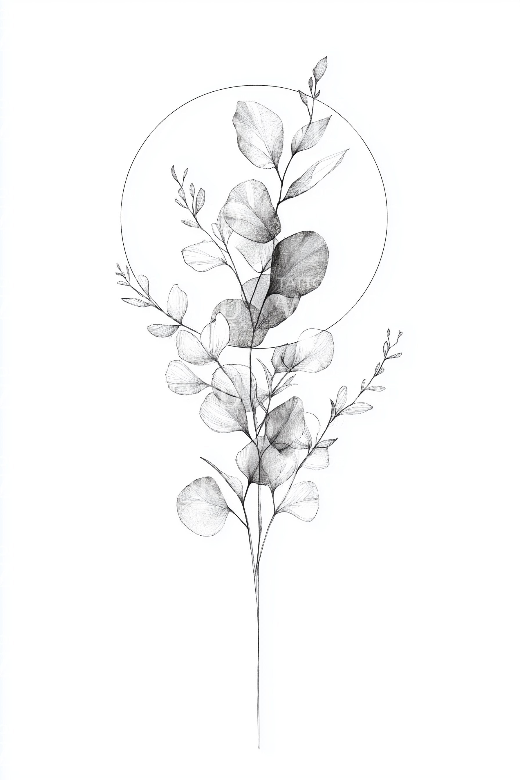 Eucalyptus Circle Fine Tattoo Design