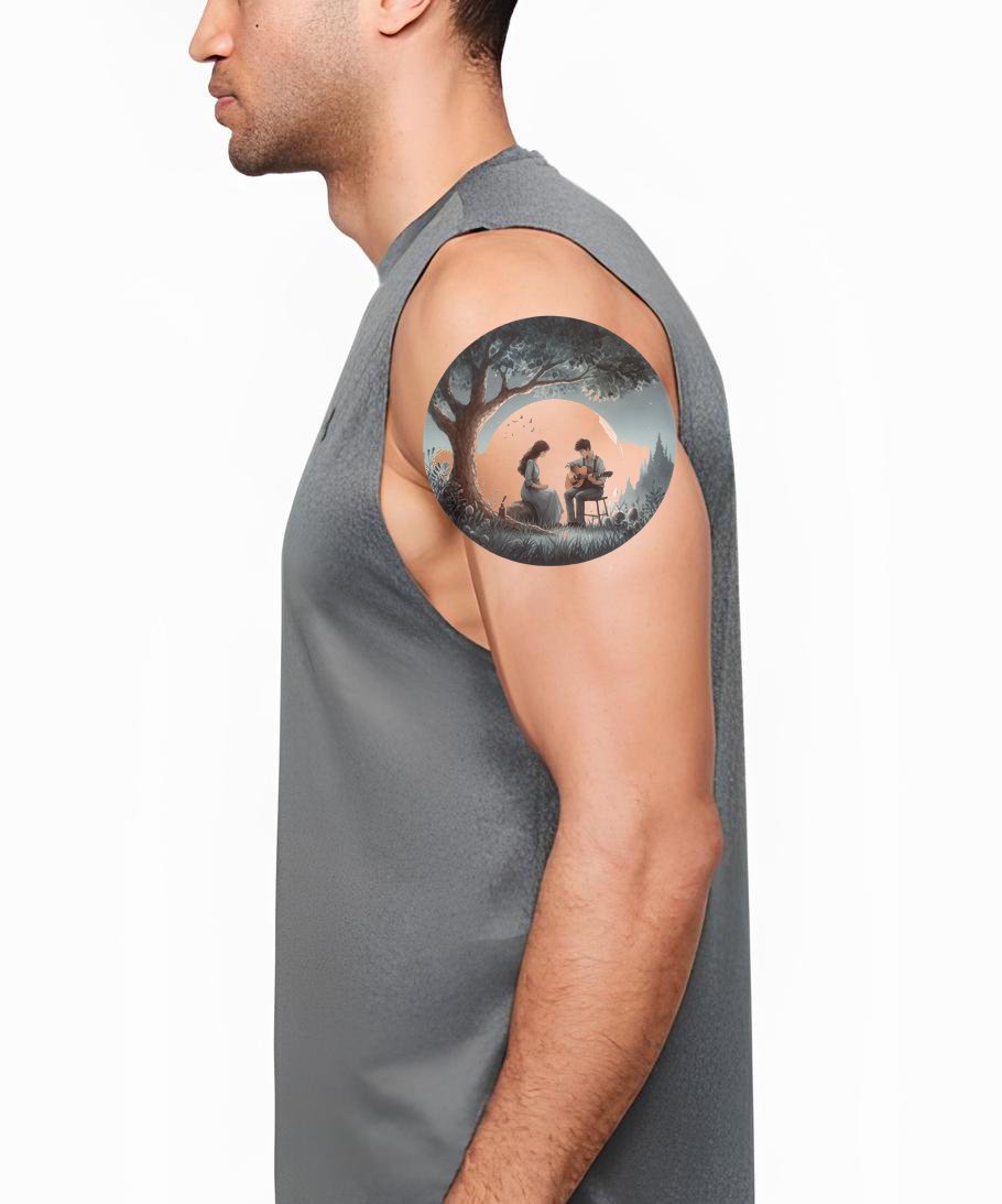 沉浸在音乐的宁静领域中,这款水彩纹身设计捕捉了傍晚的氛围,艺术地表现了一把吉他,创造出怀旧的旋律。这不仅仅是一个纹身,它是你对音乐热爱的回声,在你的肌肤上唱出美学魅力的歌曲。