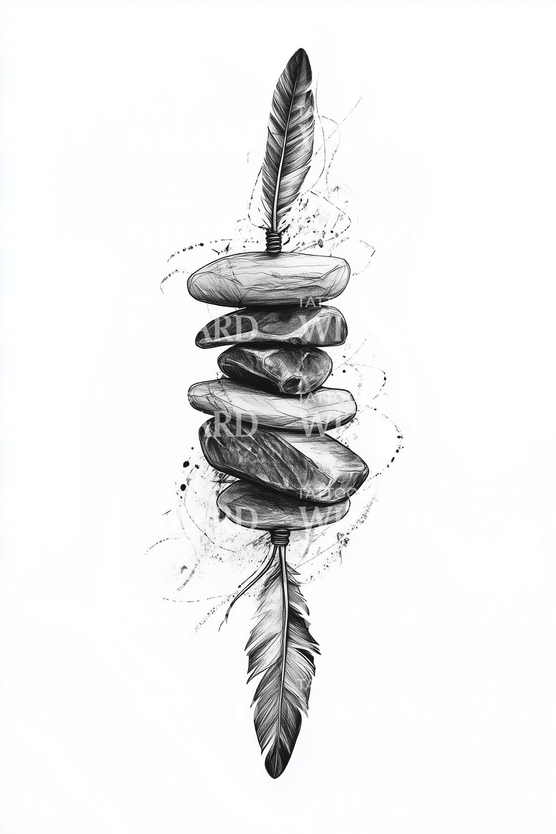 Feather with Balanced Stones Tattoo Idea