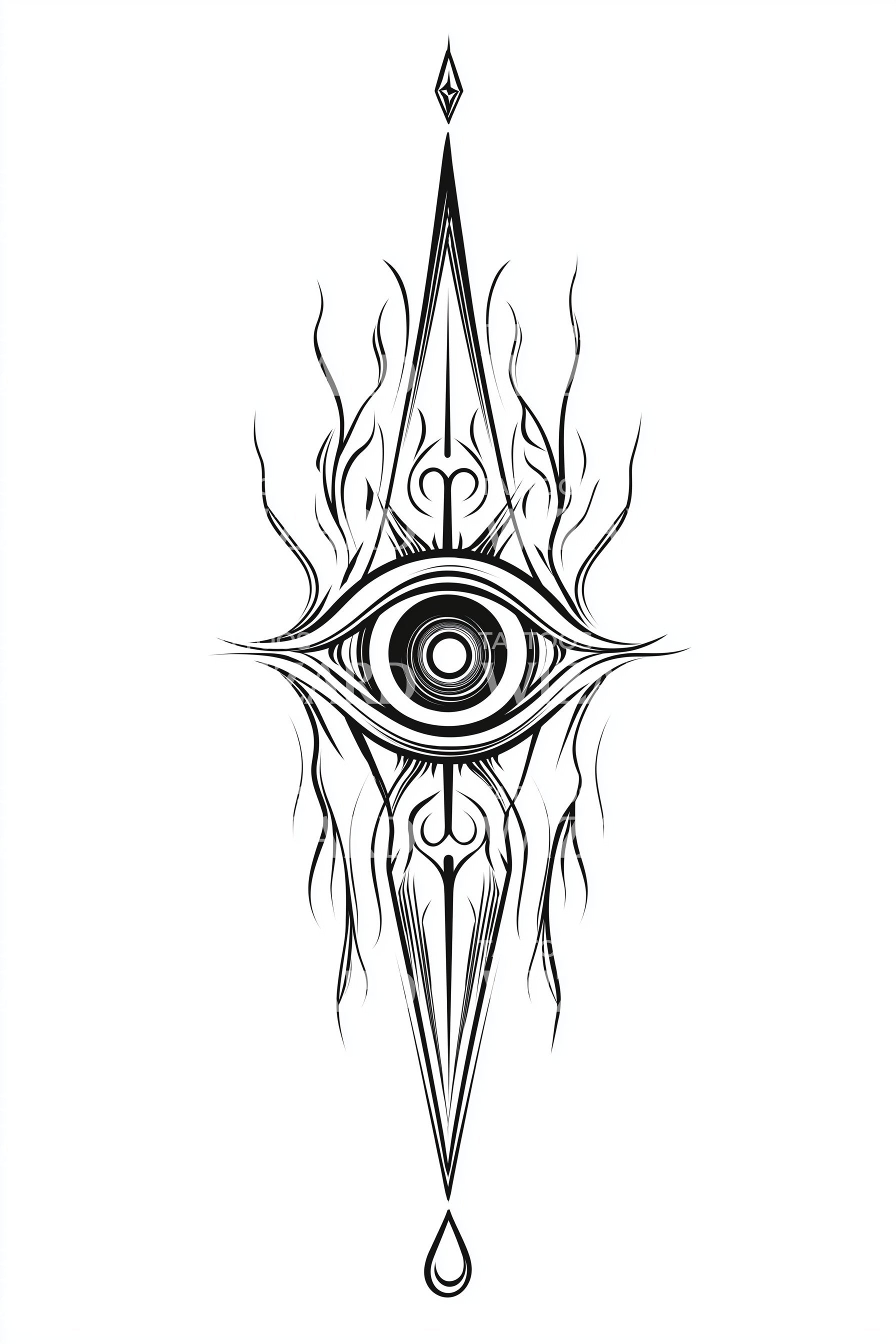 用这款黑灰纹身设计点燃你的灵魂,设计中一个神秘的眼睛被炽热的火焰包围。它象征着视野、能量与火焰。感受自己如同燃烧的野心灯塔,这个引人注目的设计彰显你的热情个性。
