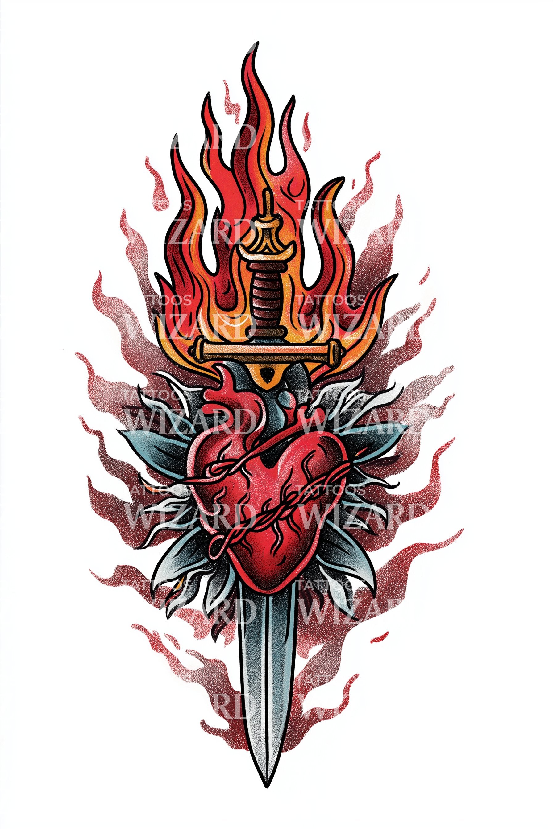 深入传统纹身艺术的精髓,这款复古设计完美融合了神圣之心,燃烧着激情,被匕首的勇气穿透。它是信仰的生动体现,彰显大胆而永恒的宣言。用这件经典作品脱颖而出。