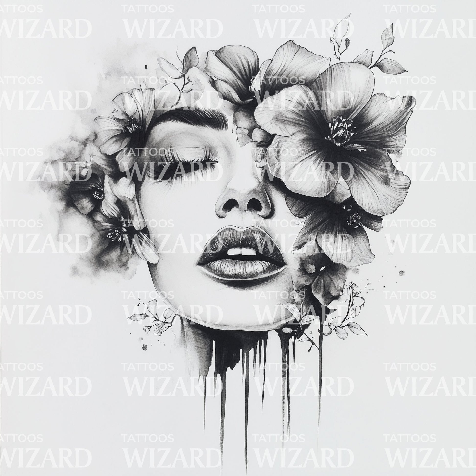 沉浸在梦幻美丽的世界中,这款黑色纹身设计令人着迷。它是爱与女性气质的迷人结合,这幅以女性为主的肖像被丰富的花卉图案雄伟地包围。细腻的黑灰色阴影使整个作品栩栩如生,真正体现了优雅的艺术形式。