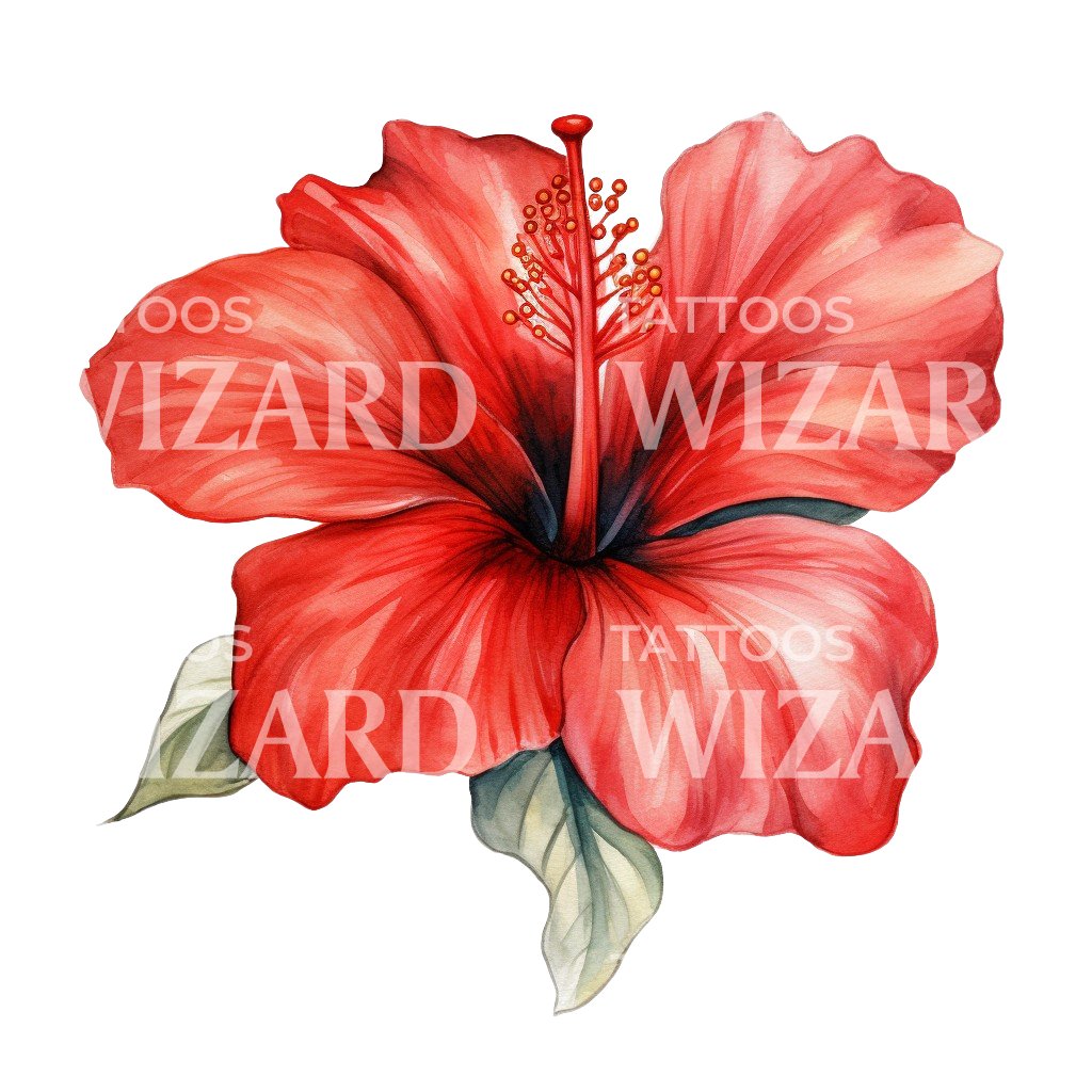 这款精美的花卉纹身设计展示了丰盈的红色芙蓉花,散发着植物的美感。充满活力的细致细节浪漫化了大自然母亲魅力的本质。作为优雅和女性气质的体现,这个设计非常适合那些渴望随身携带一片花卉宁静的人。