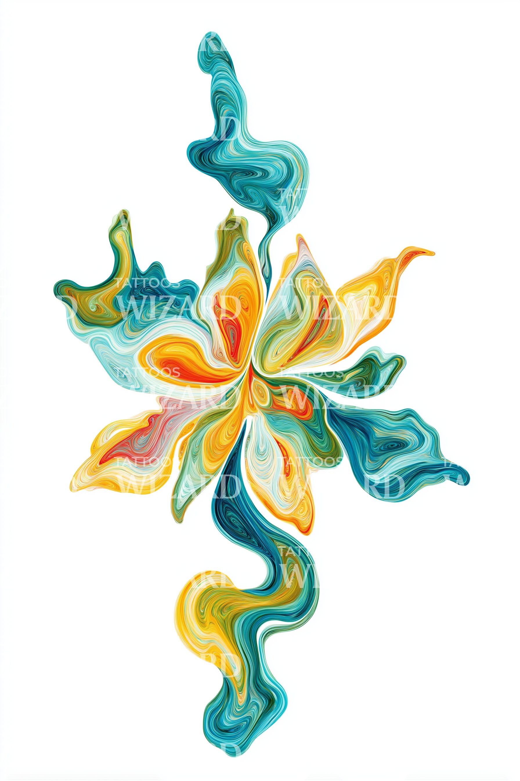 释放你充满活力的精神,尽情享受我们抽象花卉旋涡纹身设计。沉浸于流动与能量的故事中,以水彩风格精美呈现。此设计以丰富的色彩绽放,生动展现个性与艺术表达的动态魅力。