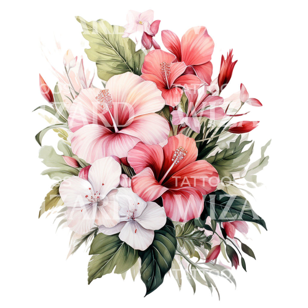 沉浸在热带天堂中,欣赏我们的花卉纹身设计。这件精美的作品,装饰着奢华的芙蓉花,展现出迷人的夏日和清新感。对于那些以大胆、艺术的方式拥抱自然之爱的人来说,这是一个理想的选择。