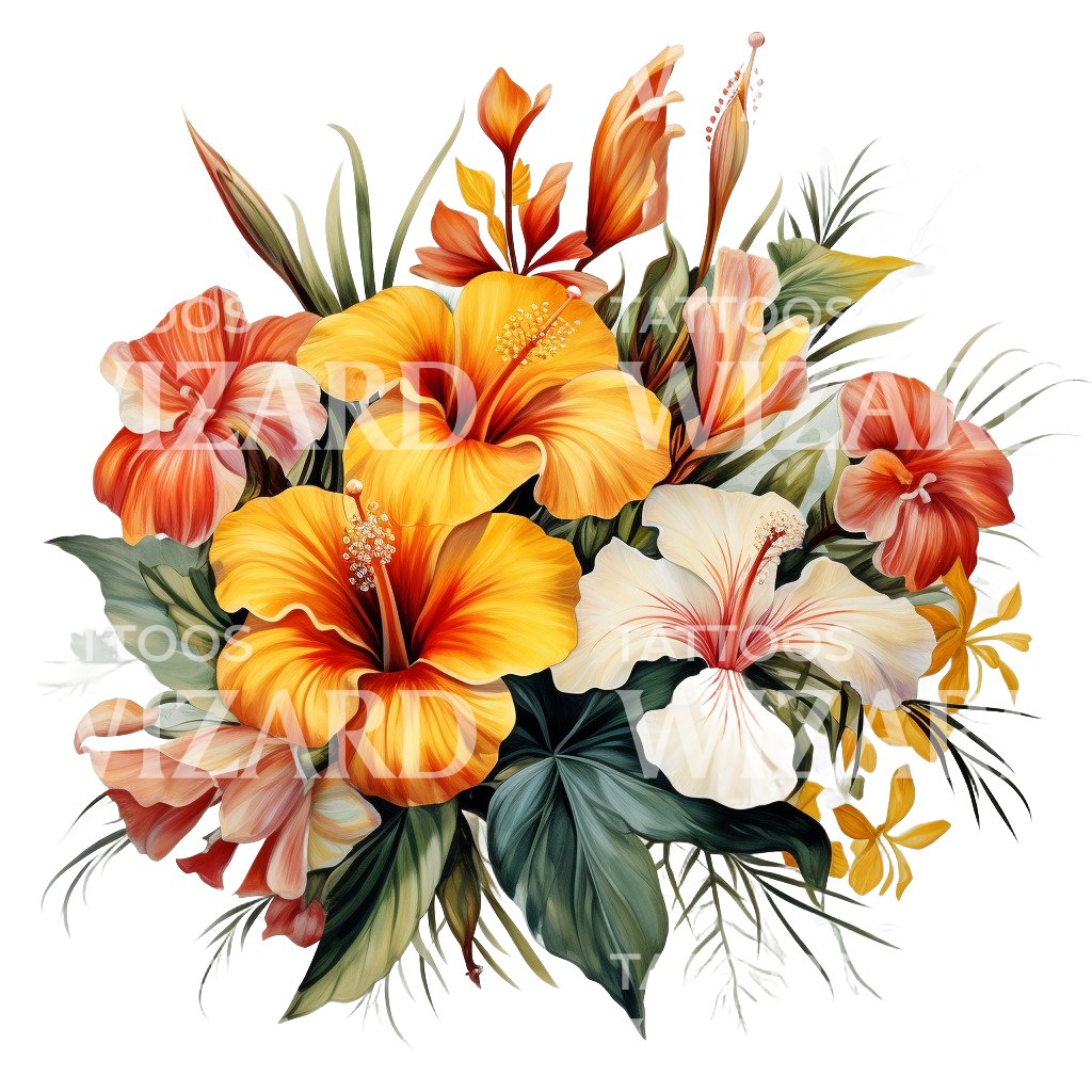 沉浸在这个热带花卉纹身设计的生动精致中。装饰着盛开的木槿花,它艺术性地捕捉了自然的美。这一设计非常适合那些想要展示他们对热带、花卉和一切花卉事物热爱的朋友。
