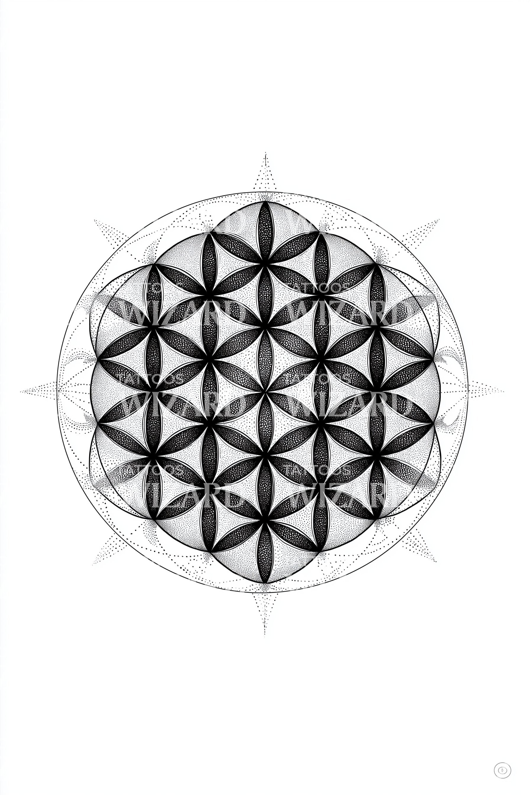 用这款精心设计的曼陀罗纹身图案装饰你的肌肤,图案以几何精确度精雕细琢。灵感源自神圣的生命之花,这一图案呈现出交织的圆环交响,展现出令人惊叹的复杂之美——以墨迹见证宇宙的壮丽之美。