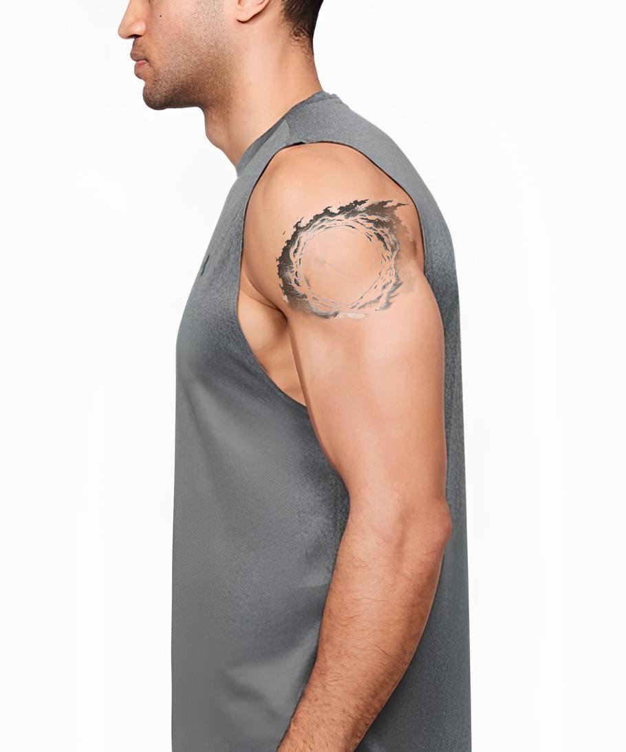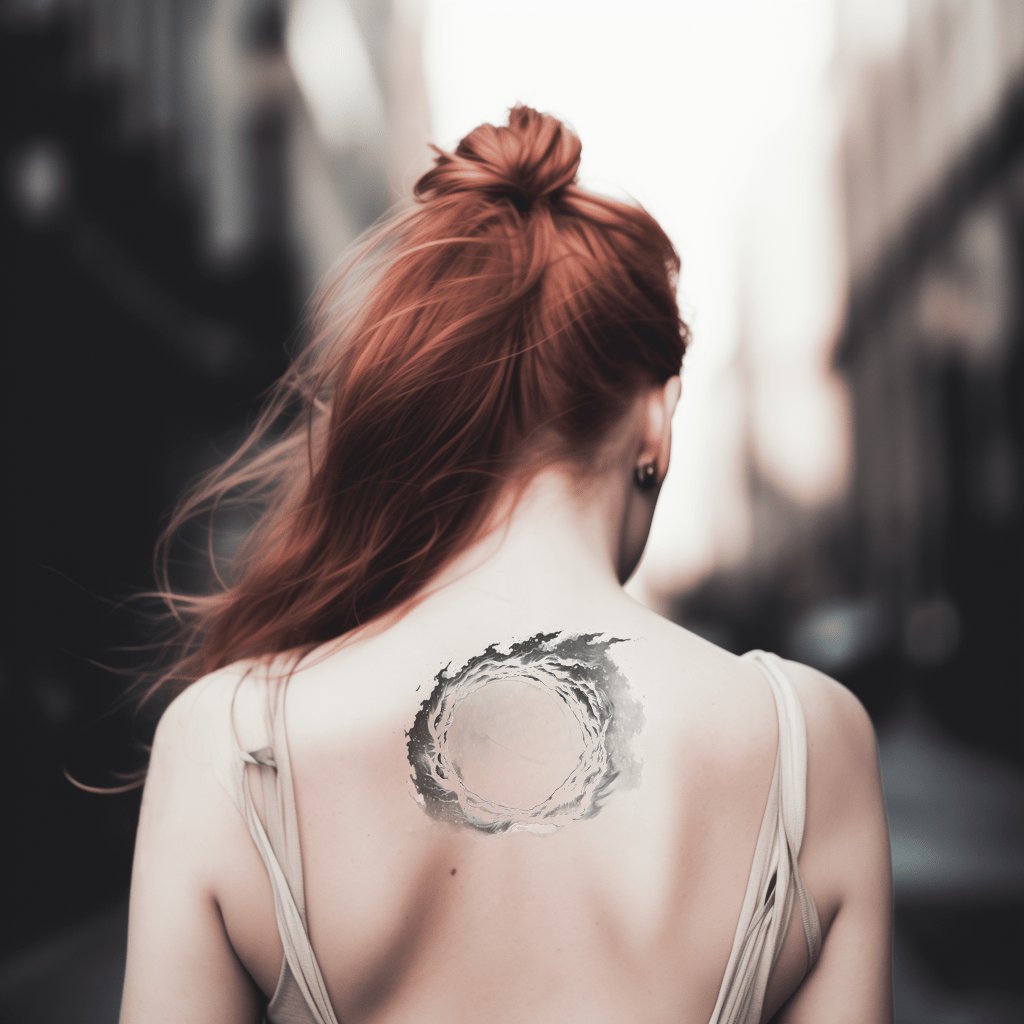 释放你内心的星空观察者,尽享这款黑灰色的纹身设计。设计展现了一个迷人的漩涡,通向一个包含行星和宇宙元素的银河景观。唤起太空的深邃神秘和美丽,以迷人的黑灰色调捕捉。